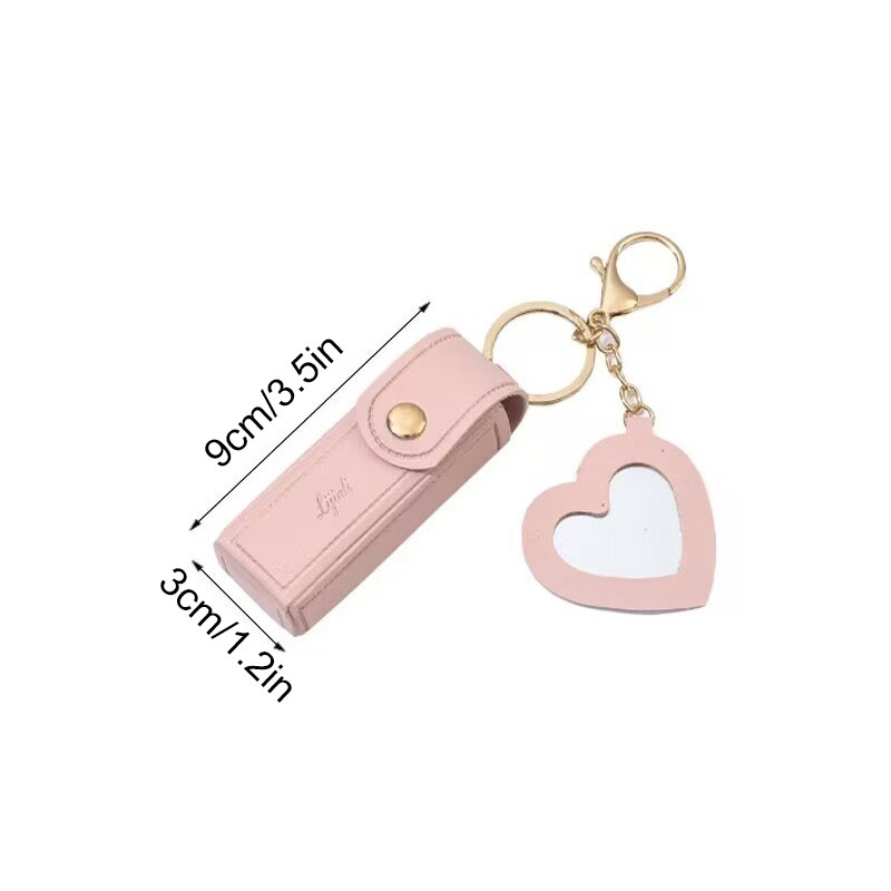 Women Portable Leather Lipstick Bag Key Chain Makeup Pouch Lip Balm Keychain Lipsticks Protective Cover Keyring