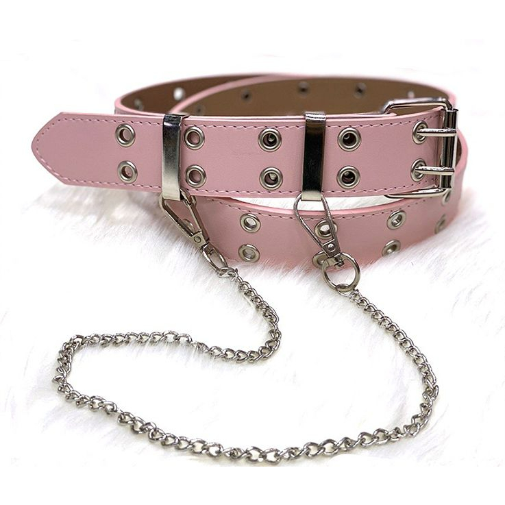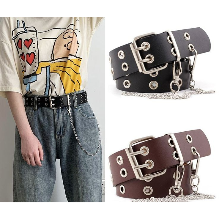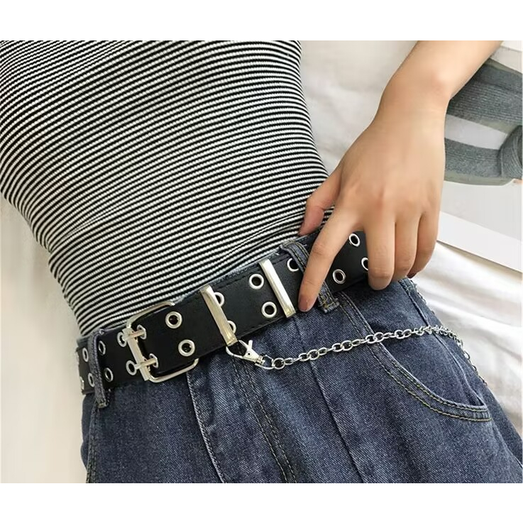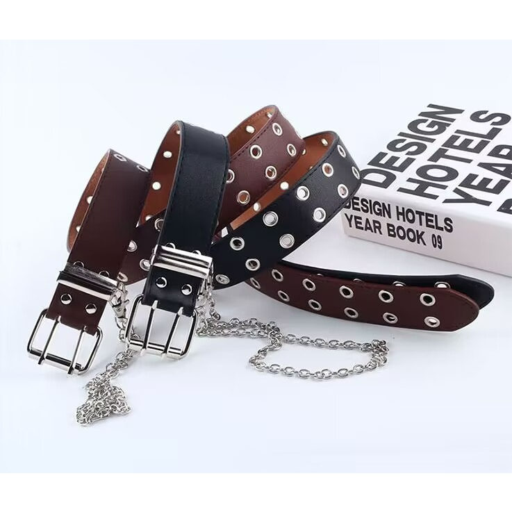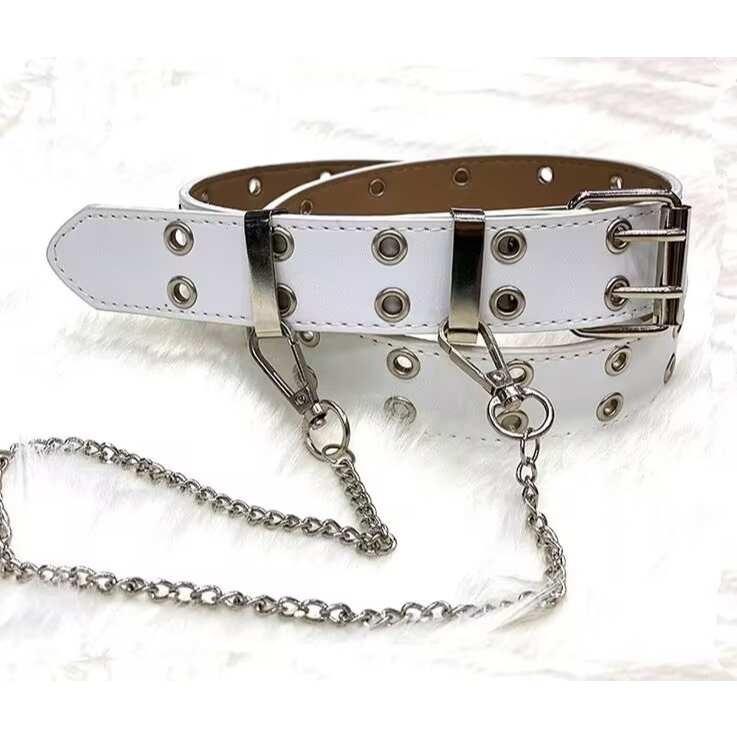 Women Punk Chain Fashion Leather Belt Adjustable Double row belt