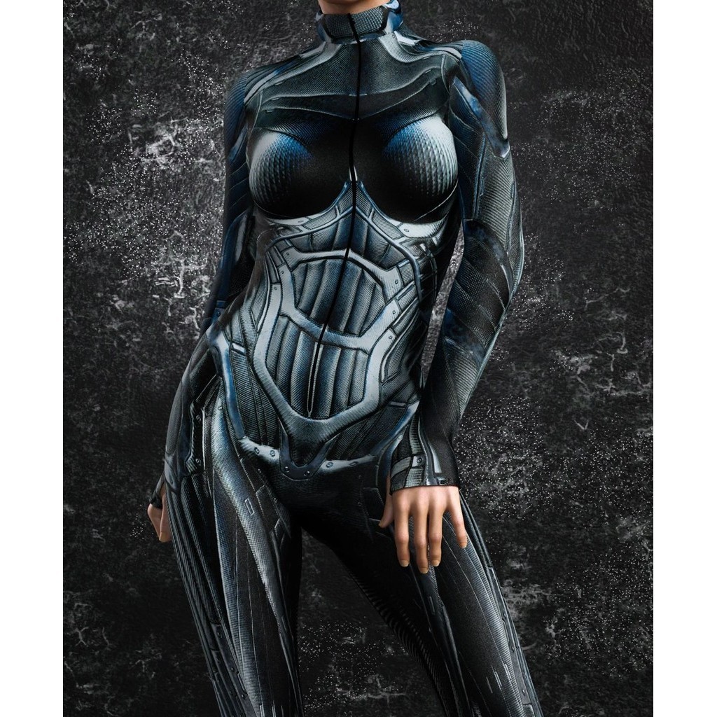 Women Robot Armor Zentai 3D Digital Print Jumpsuit Cosplay Costume Women's Zipper Bodysuit Party Halloween S-4XL