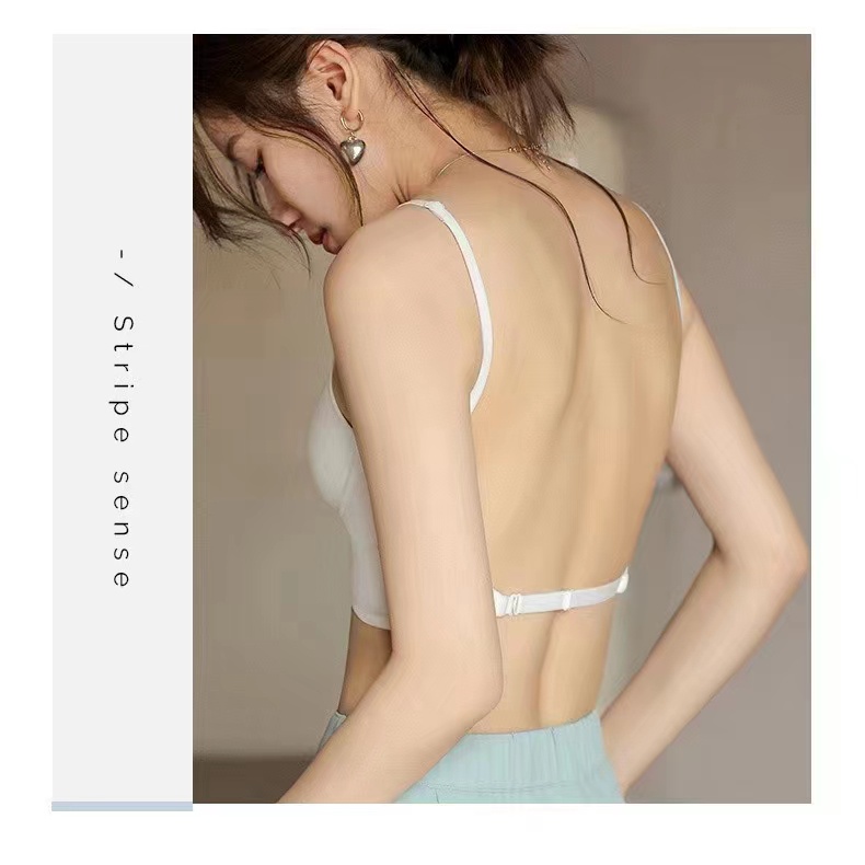 Women Sexy Backless Bra Thin Cup Bra Female Wireless Push Up Lingerie Deep U Low Back Thin Cup Bralette