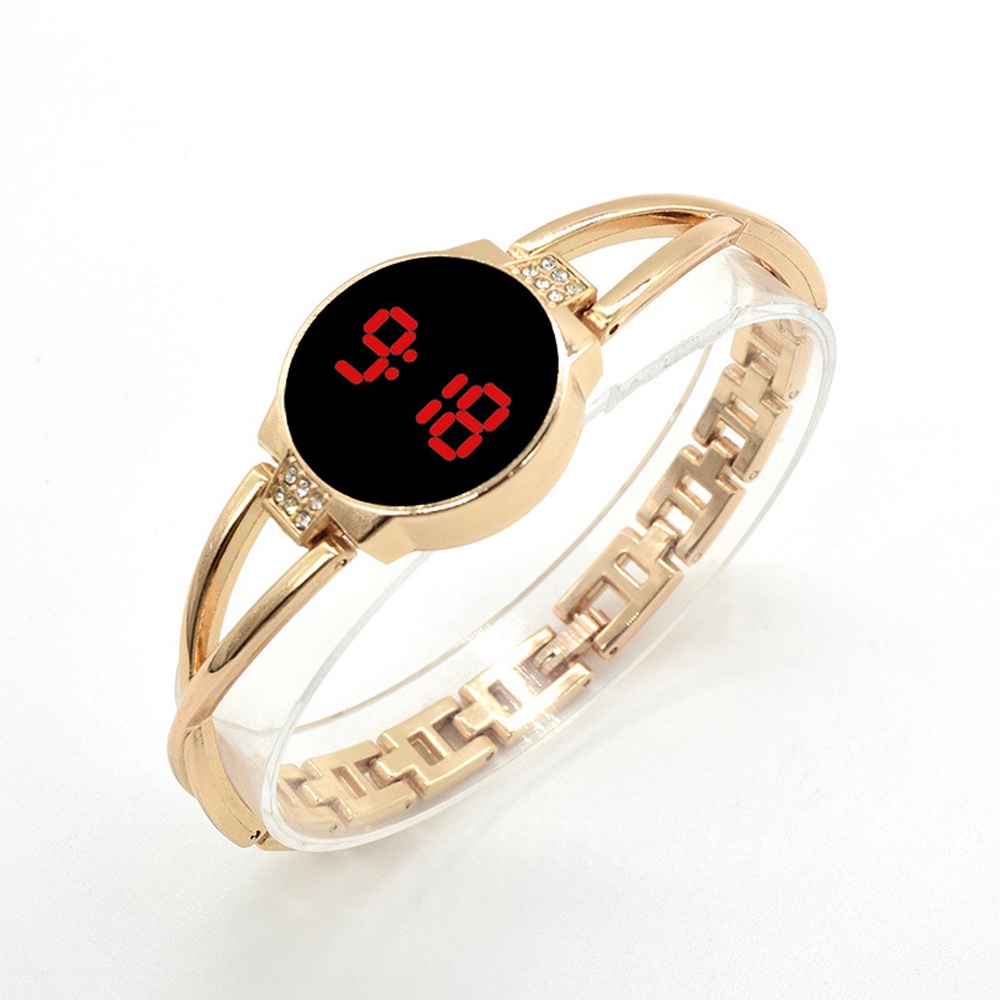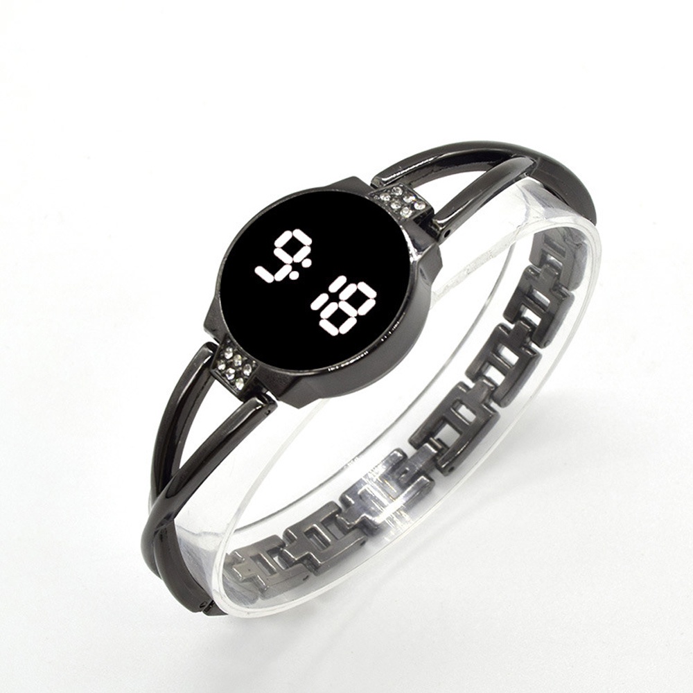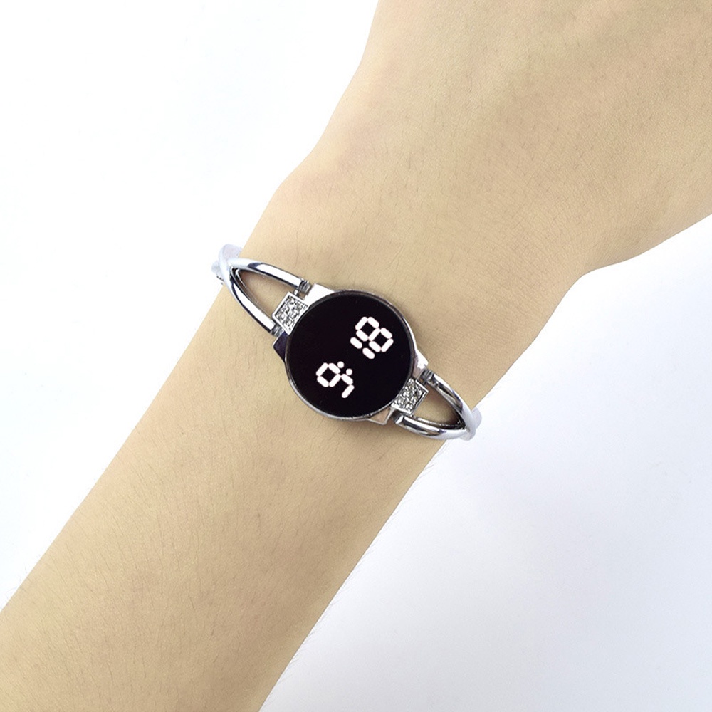Women Stylish Digital Watch Round Dial LED Electronic Wristwatch Thin Alloy Belt
