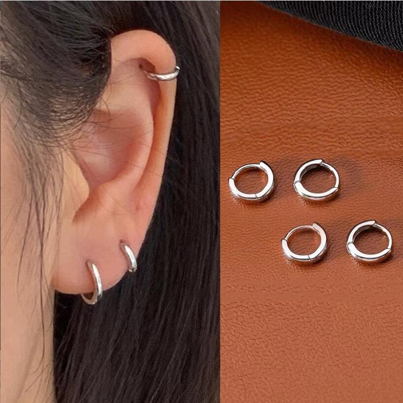 Women s925 silver Fashion Small Circle Piercing Earrings