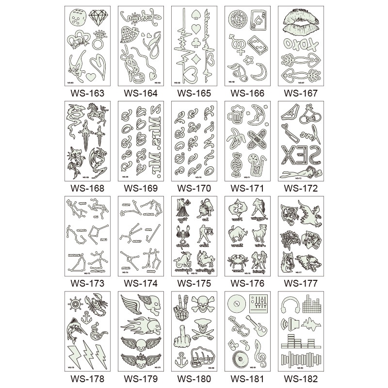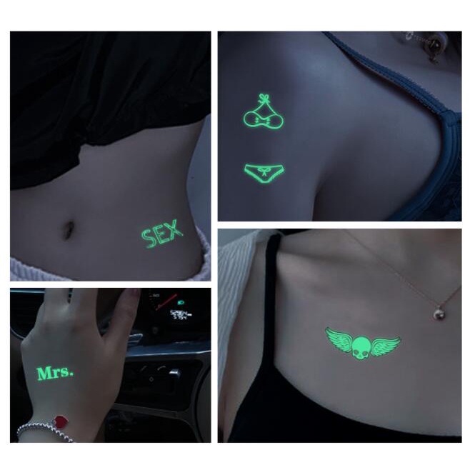 Womens Mens Fake Fluorescent Temporary Tattoo Sticker Glow In The Dark Club Bar Music Carnival Party Waterproof Magic Face Leg Arm Skull Animal Tattoo Sticker for Women Men