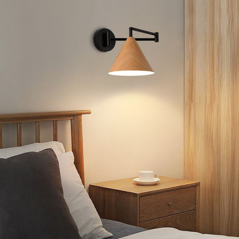 Wood Grain Rocker Arm Wall Light Modern Design Simple Foldable Bedroom Wall Lamp Bedside Reading Lamp Indoor Sconce