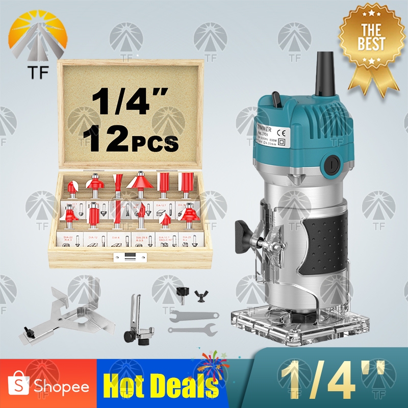 Wood Palm Router Tool Hand Trimmer Woodworking Joiner Cutting Palmming 750W with 12PCS Router Bits