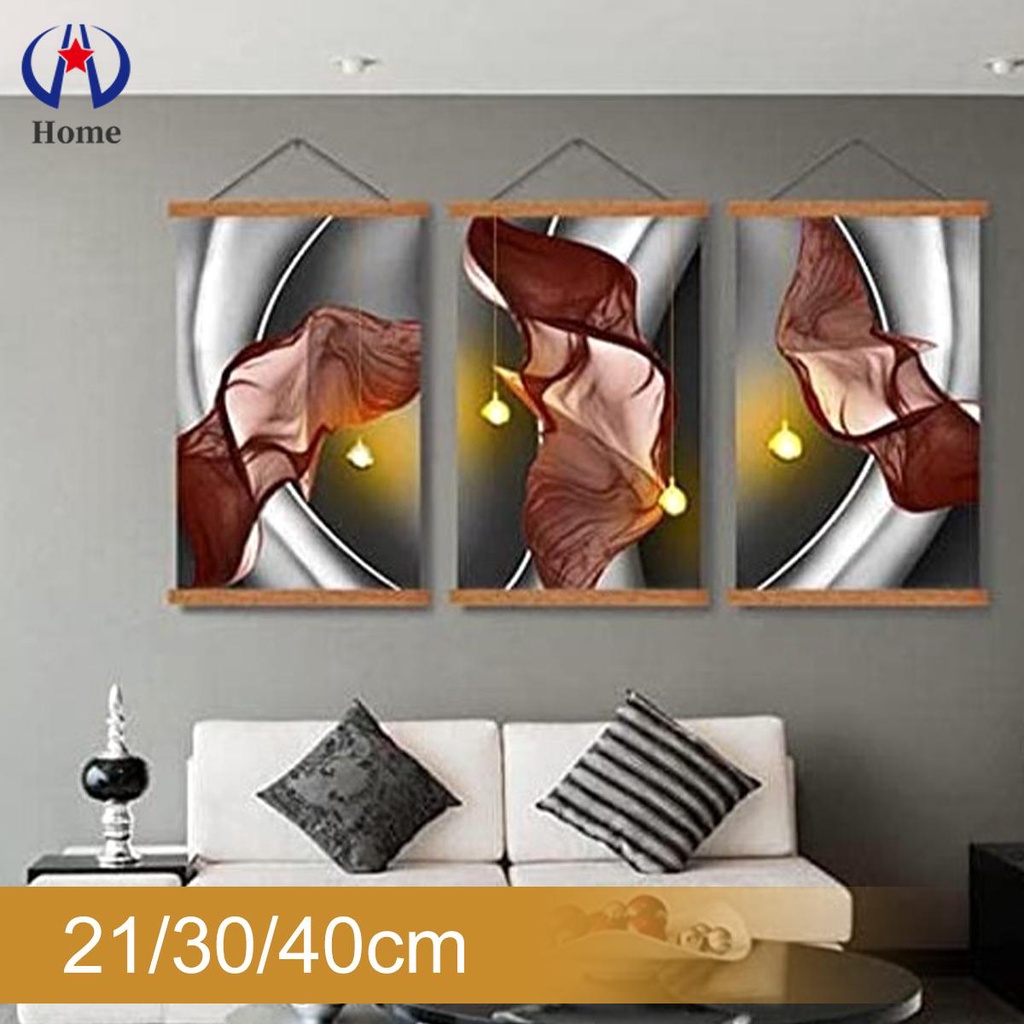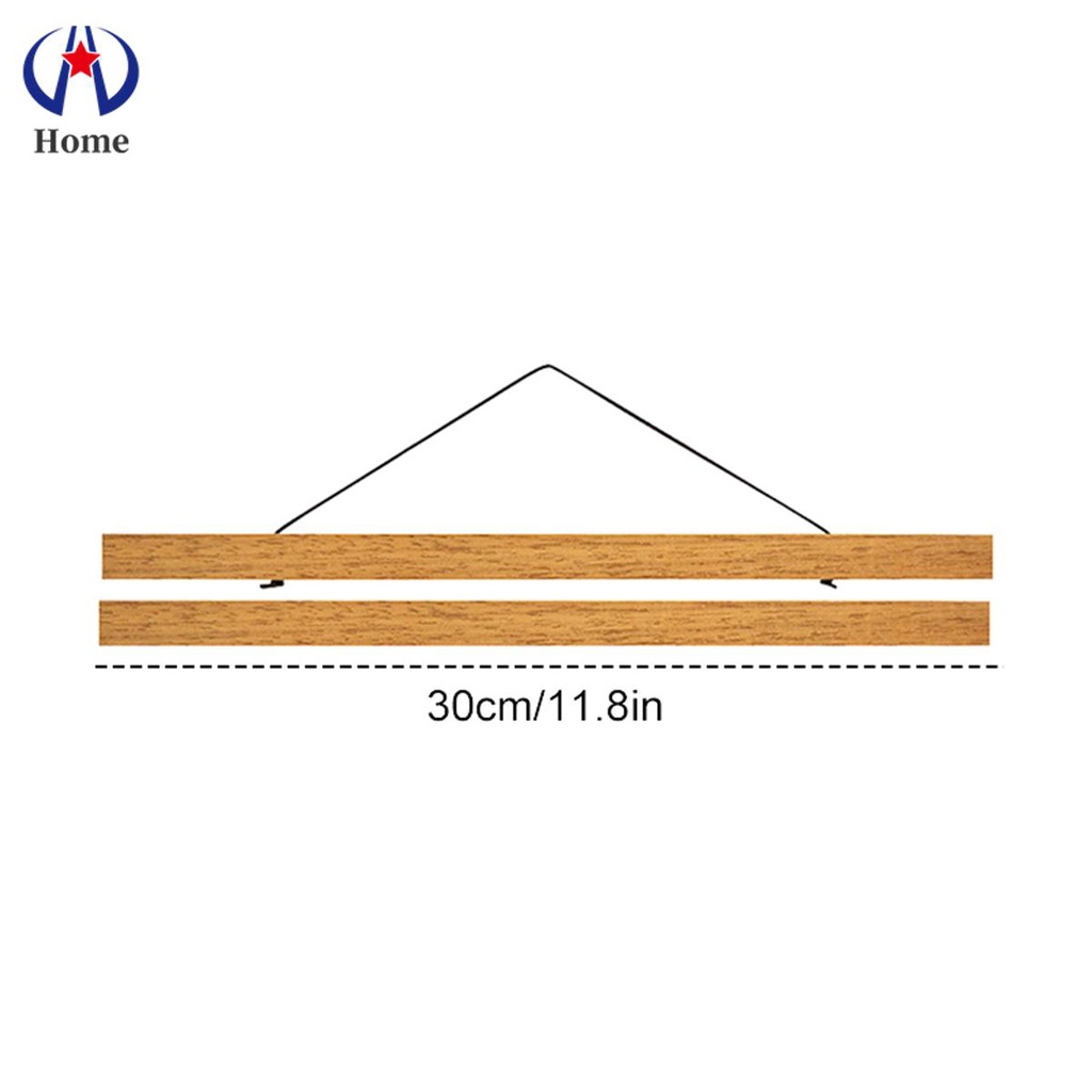 Wood Poster Frame 4Pcs Magnetic Poster Hanging Rod Simple Teak Wood Photo Hangers with Hanging Rope