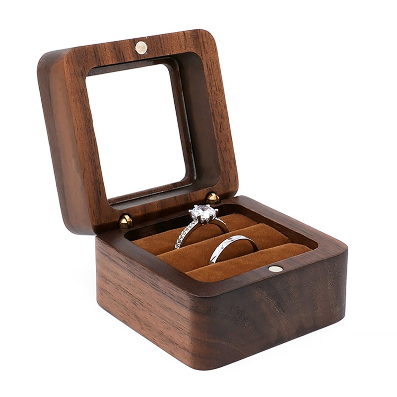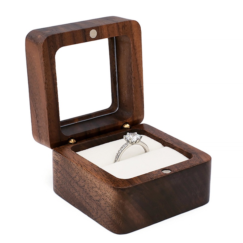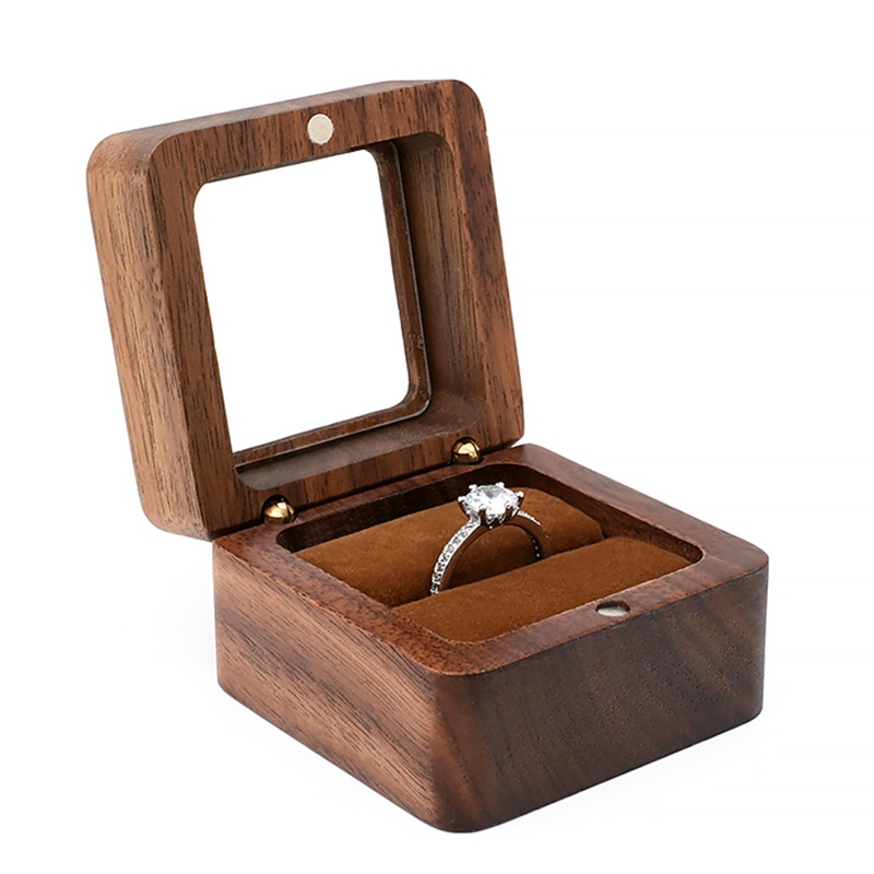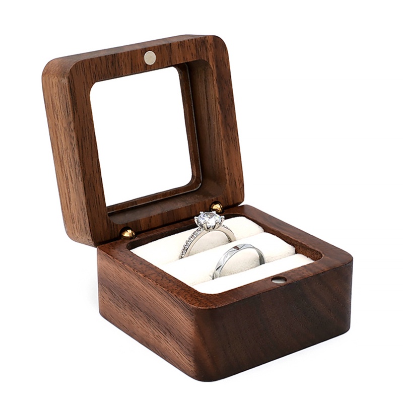 Wood Ring Box Single/Double Slot Interior Holder Jewelry Chest Organizer Earrings Coin Jewelry Presentation Box