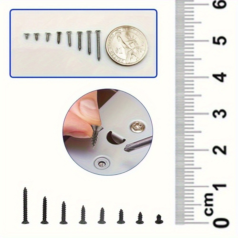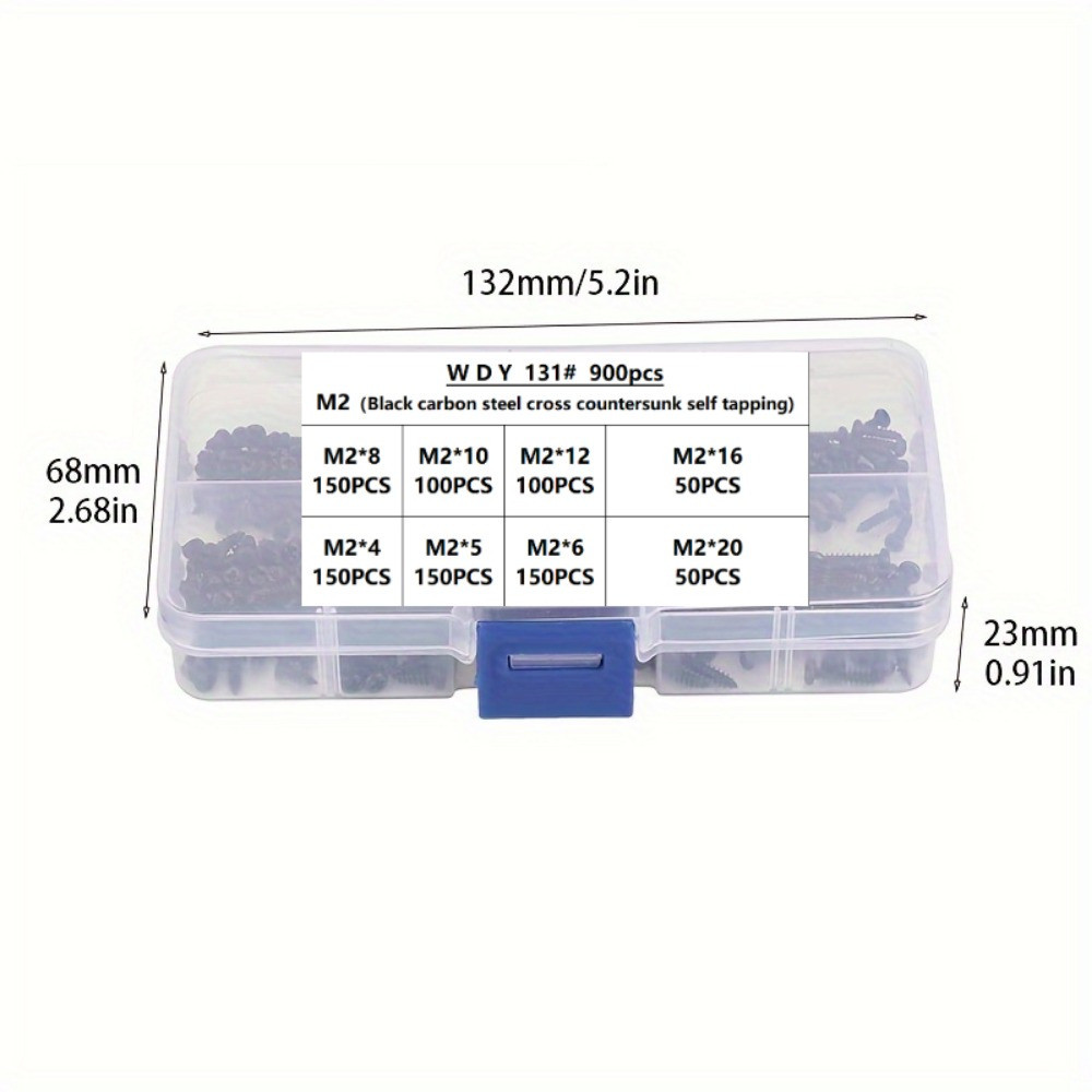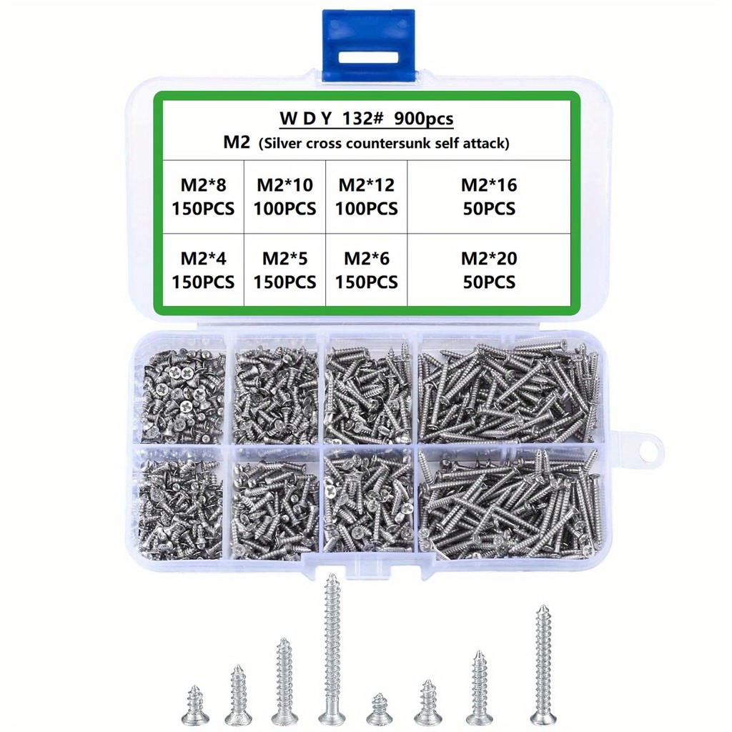 Wood screw M2 screw 900 Phillips self tapping screw kit, M2 black/nickel plated complete set of locking screws and wooden screws, high quality, anti loosening, durable, versatile