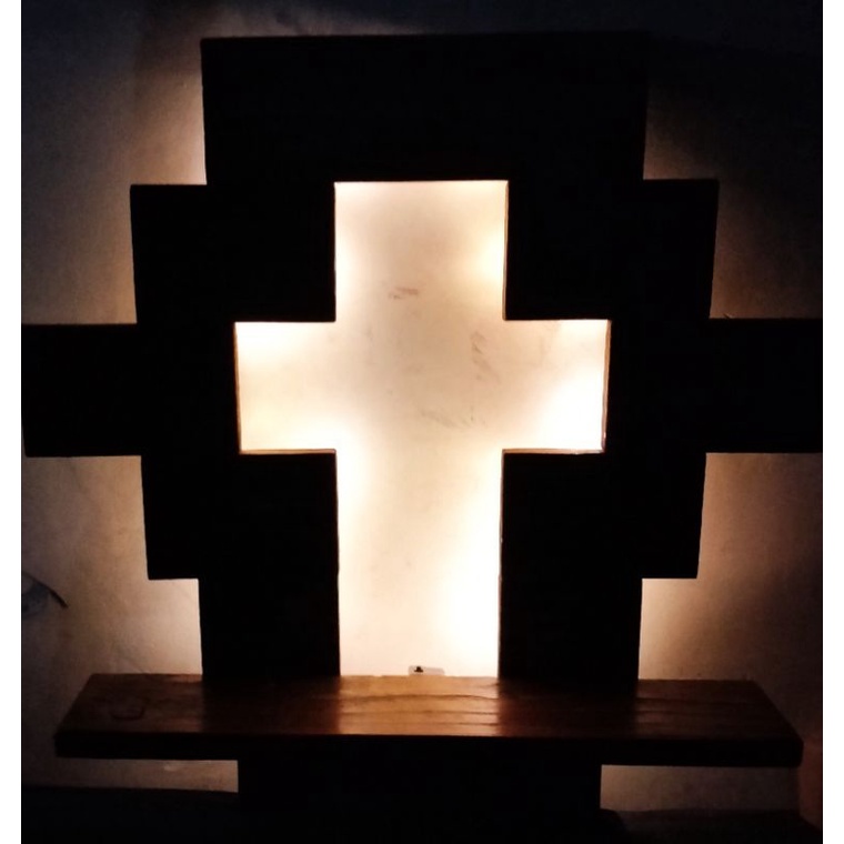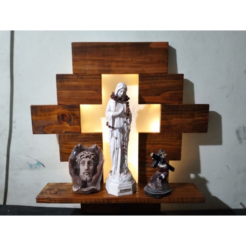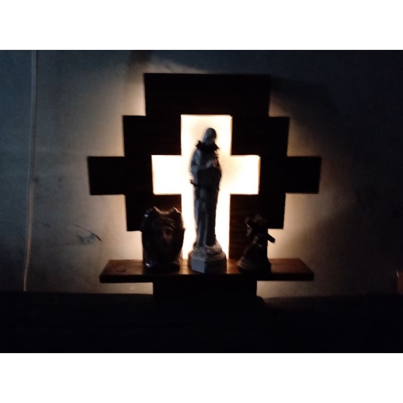 Wooden Altar. wall mountt.with Led back light. 75cm height.75 cm length. 20cm width..