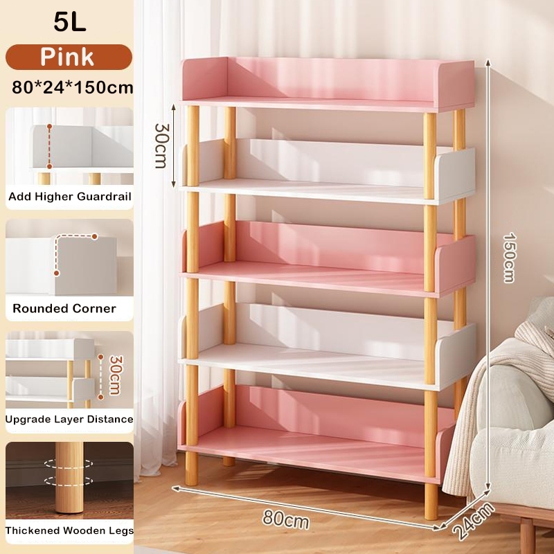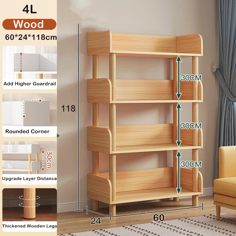 Wooden Book Rack Book Shelf for Children Study 150CM 3/4/5 Layers Height Storage Rack Organizer