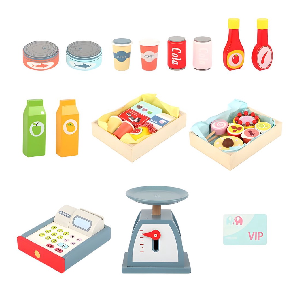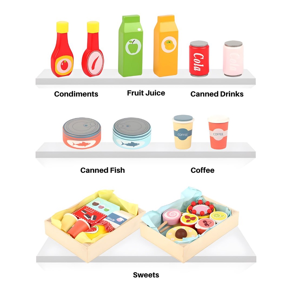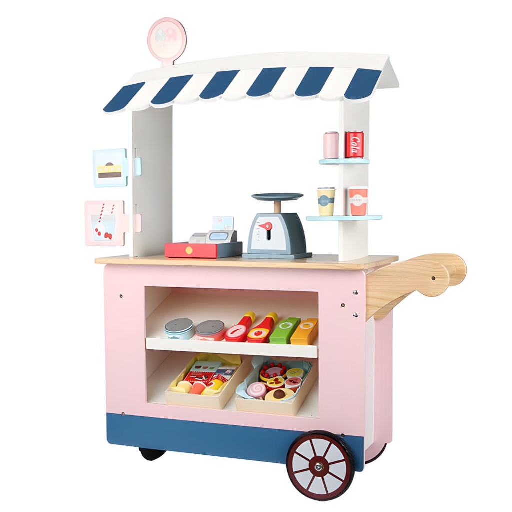 Wooden Convenience Food Grocery Stall Cart for Kids Pretend Play by WISHLAND