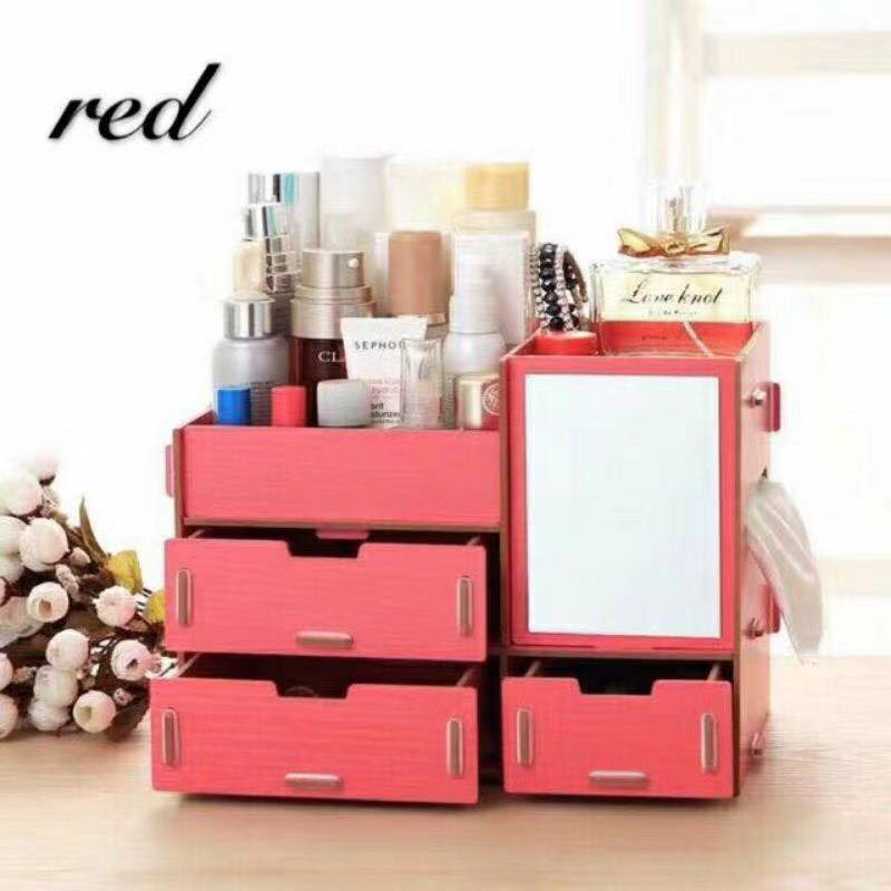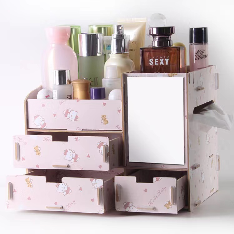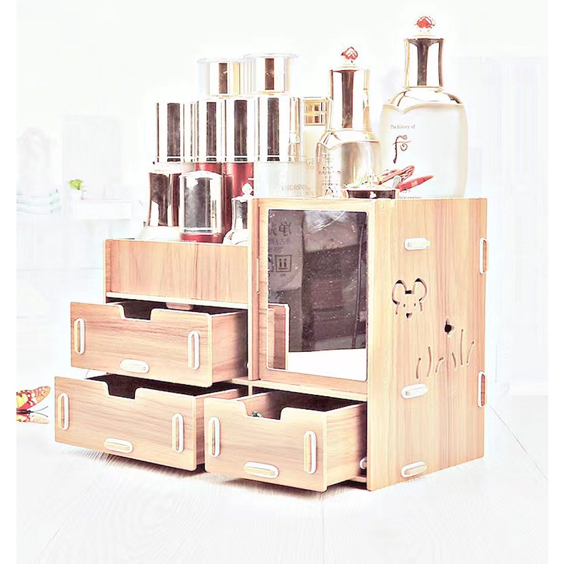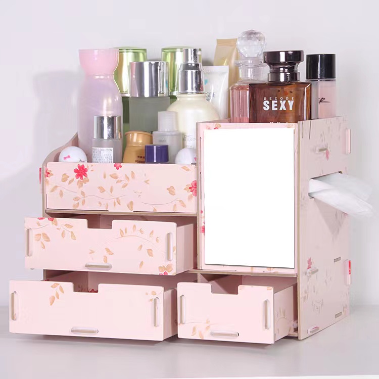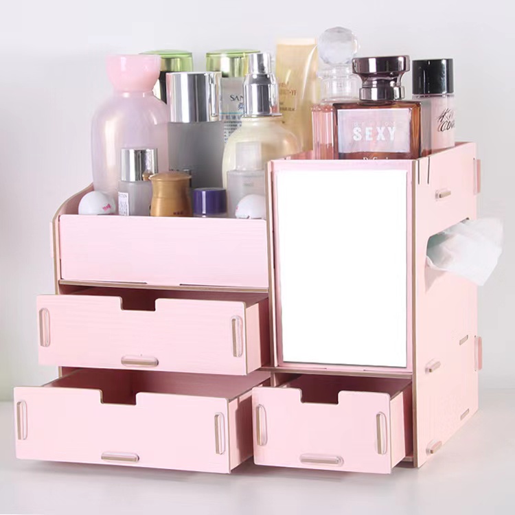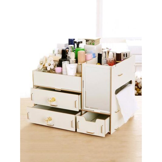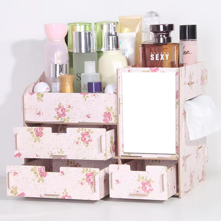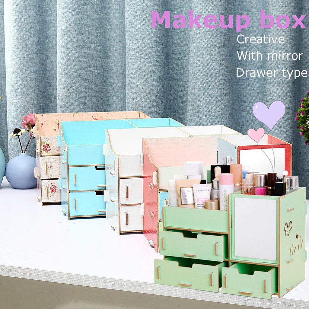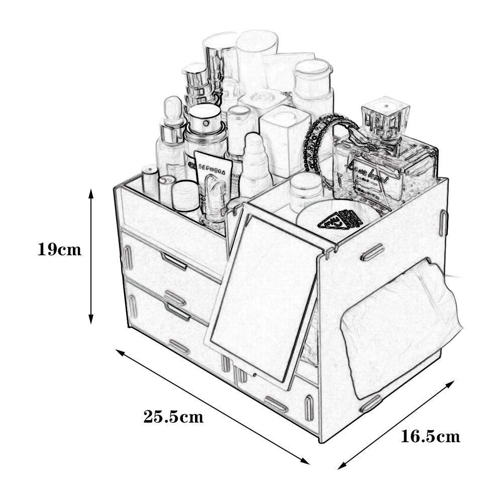Wooden DIY Makeup Organizer Cosmetic Organizer Makeup Drawer Box Jewelry Storage Box (No Mirro)