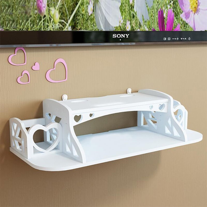 Wooden DVD Player Rack TV Box Router Rack Wall Mount 2 Tier Shelf Shelves Wall Decor Organizer