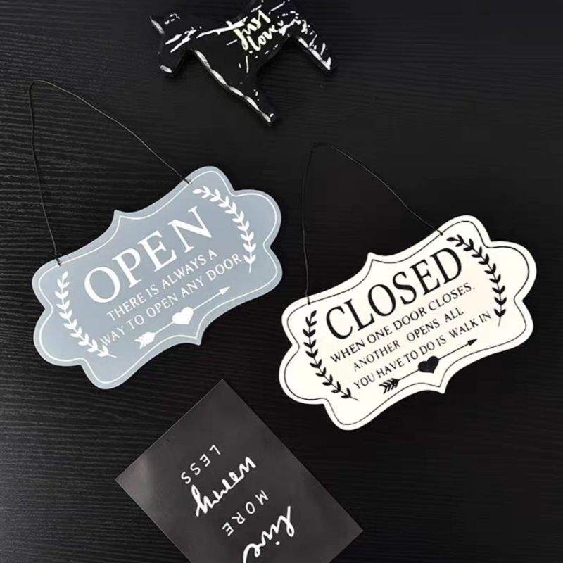 Wooden Decoration Close Open Signage Board Hanging Wall Decor 23.5x13cm