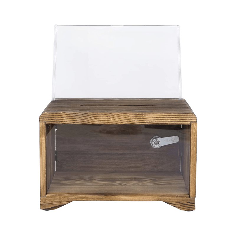 Wooden Donation Collection Box with Lock - Rustic Burnt Wood Tip Box Comment Card Box with Chalkboar