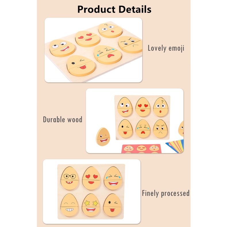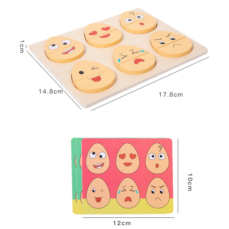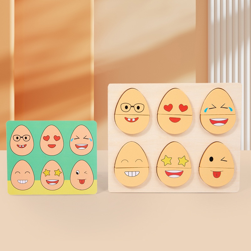 Wooden Emoticon Matching Block Puzzle Educational Funny Eggs Games Montessori Toy for Preschool Kids