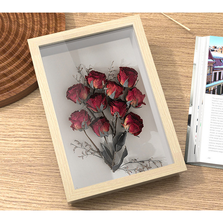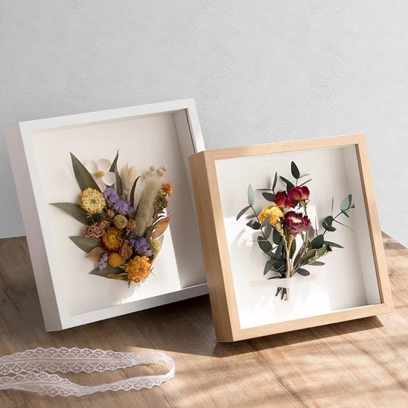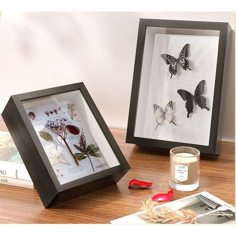 Wooden Flower Frame 6cm Hollow Frame Transparent Glass Photo Frame Dried Flower Storage Shadow Box
