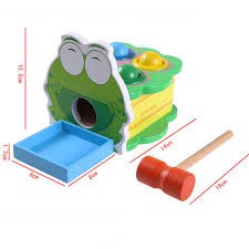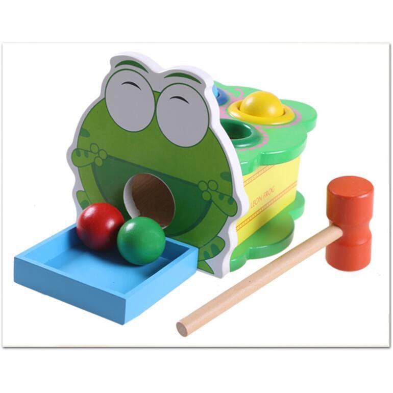 Wooden Frog Knock Ball Punding Bench With Hammer Educational Toys (READY STOCK)