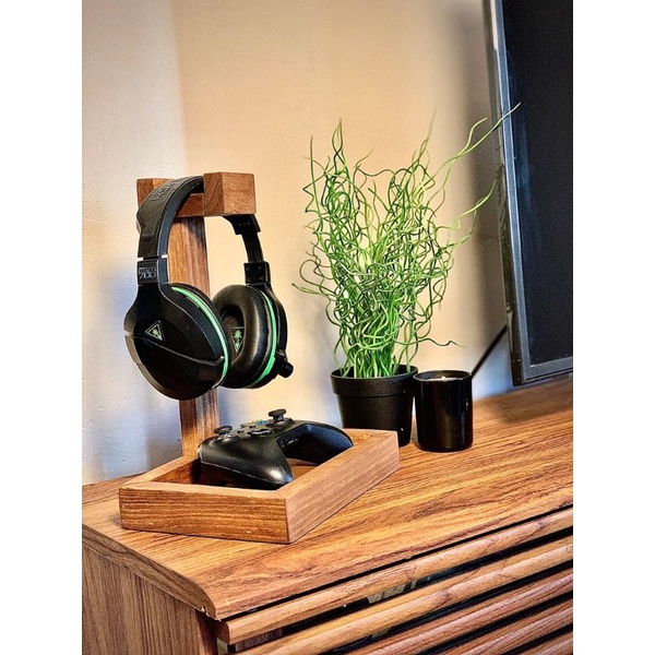 Wooden Headphone Stand Rack Playstation Xbox Console Controller Modern Rustic