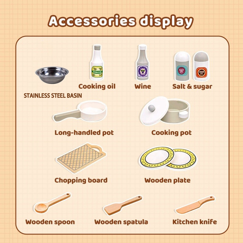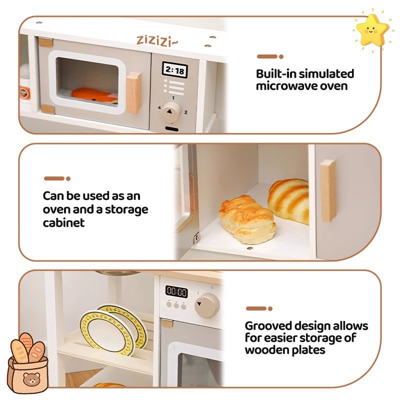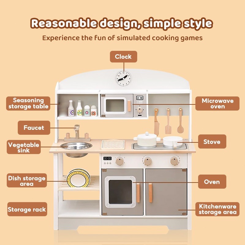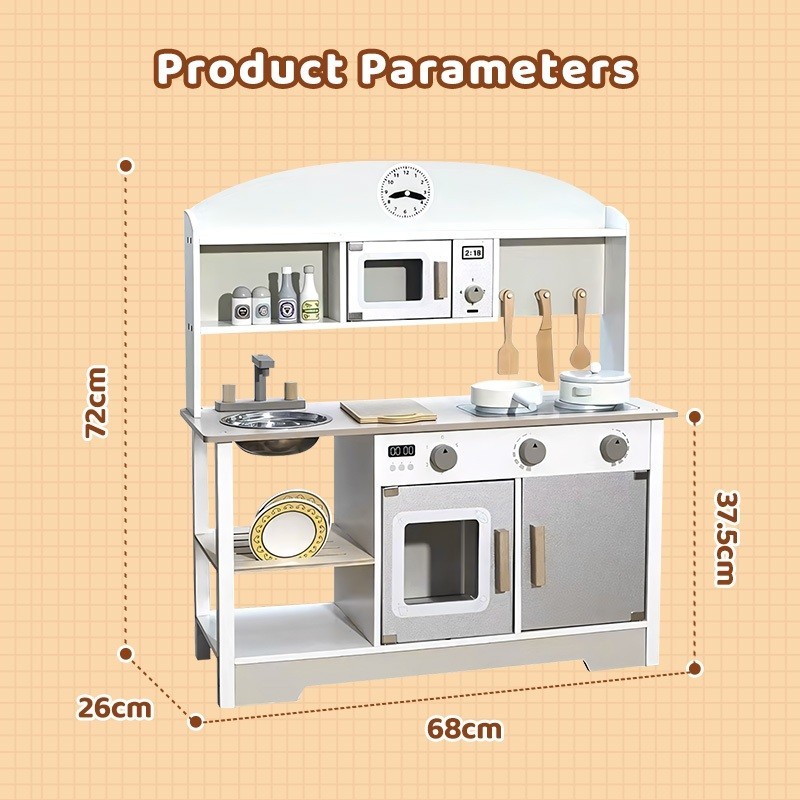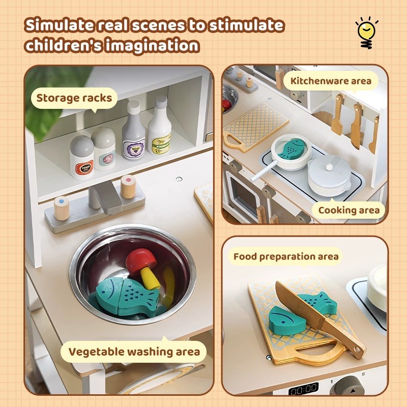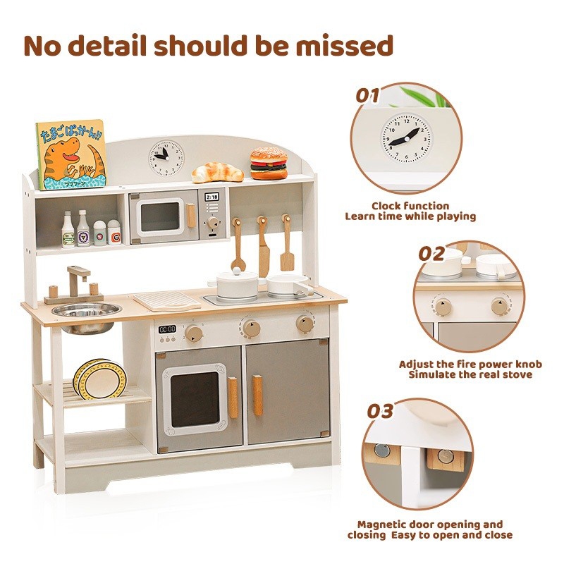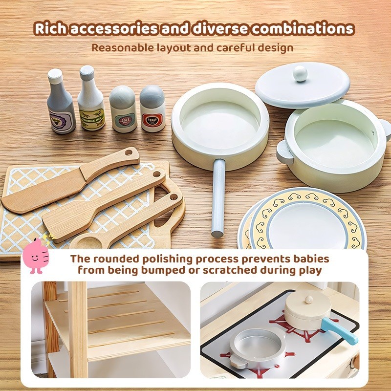 Wooden Japanese White Kitchen Dress up Game Cooking Children's play House Cooking simulation kitchen