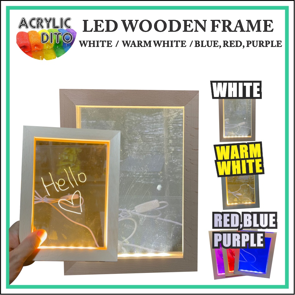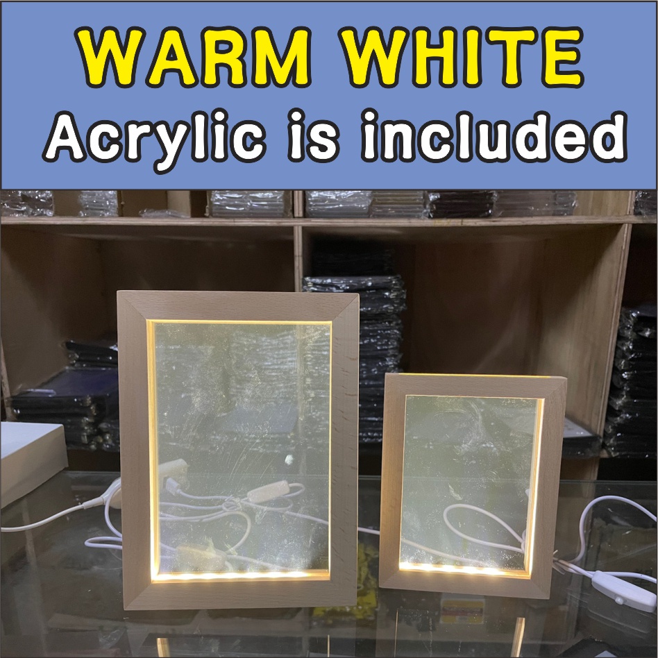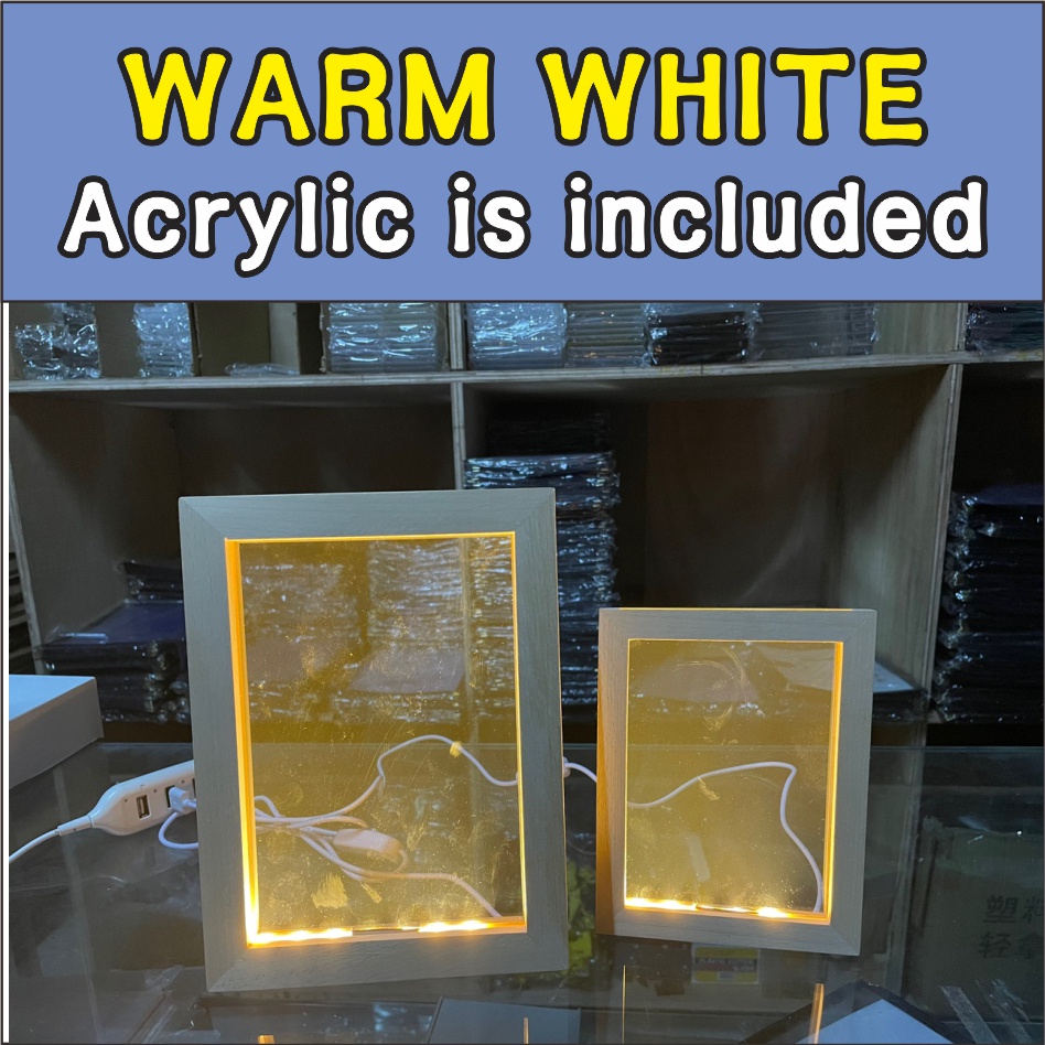 Wooden Led Light Acrylic Frame / White Warm RGB Night Lamp Wood Decor Stand DIY Paint Standee