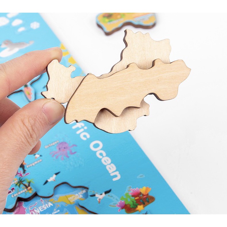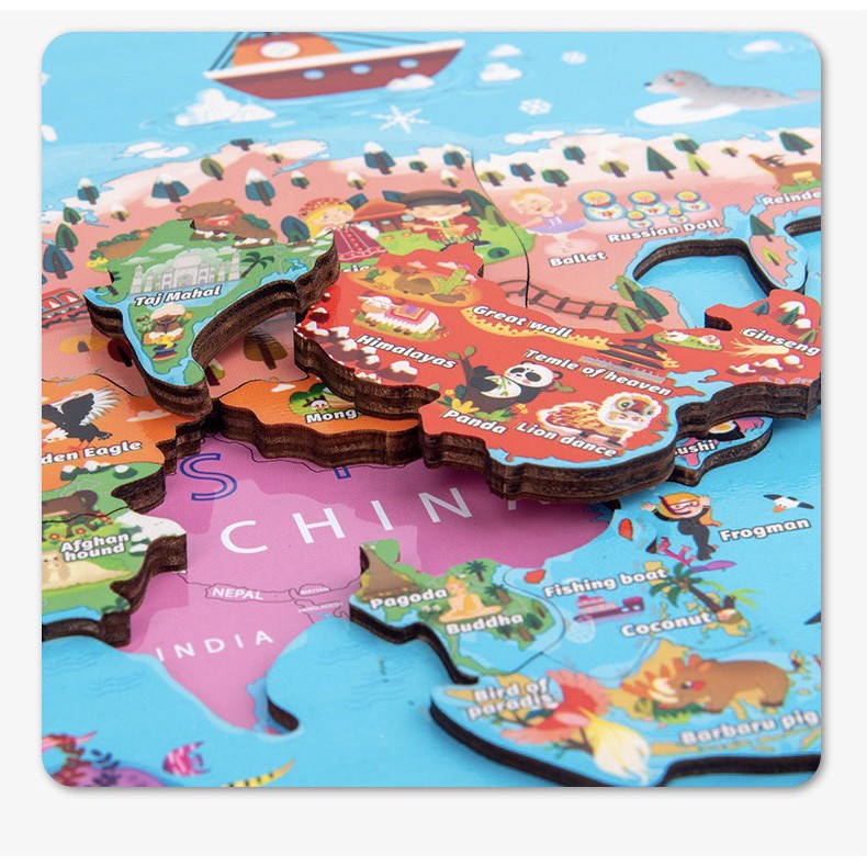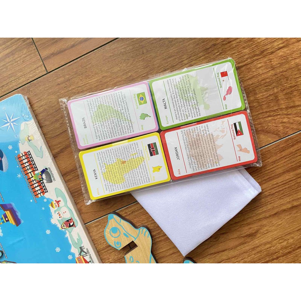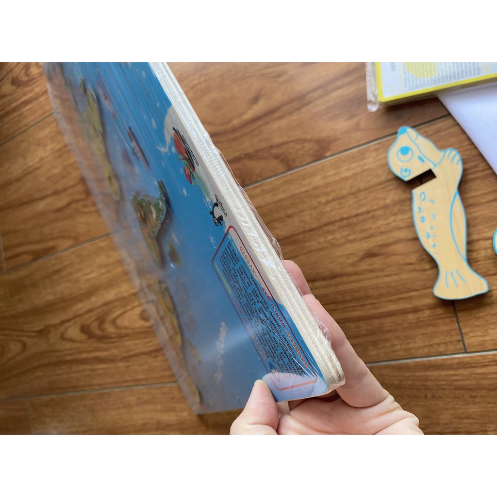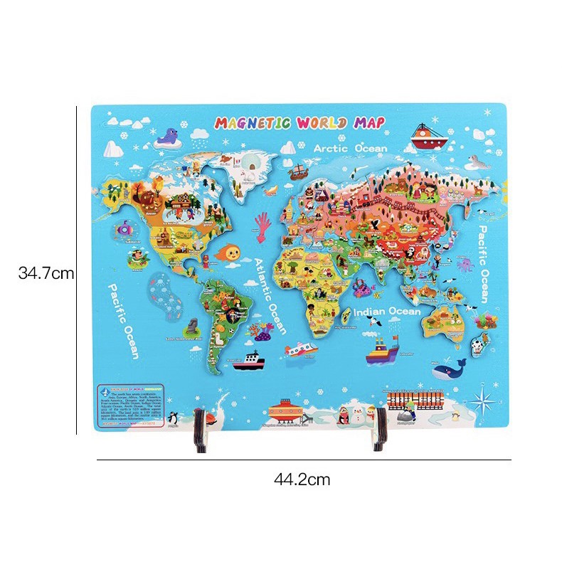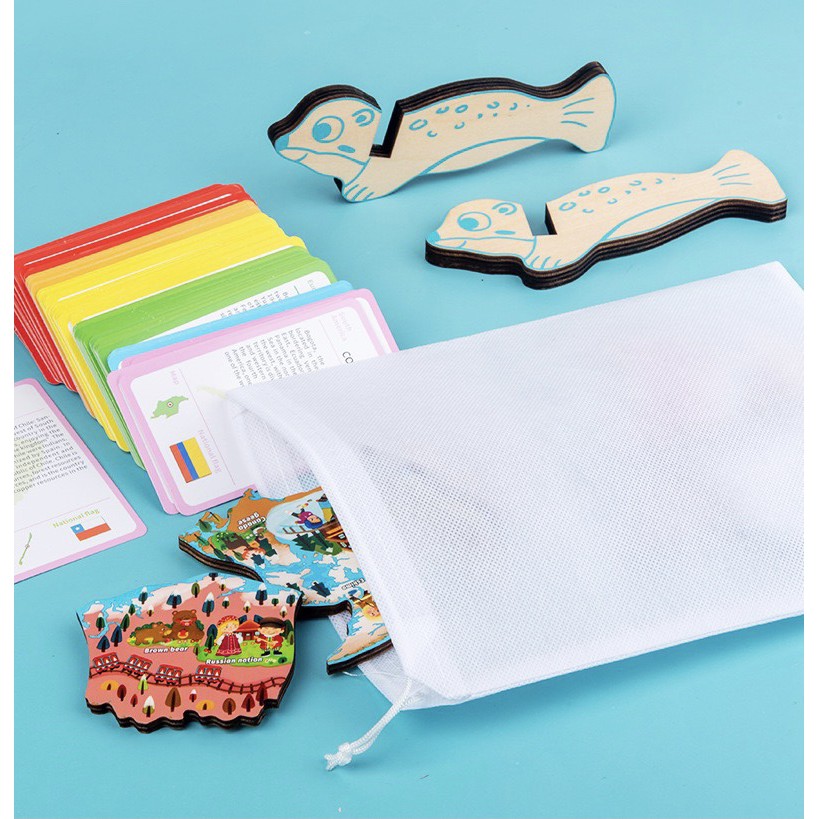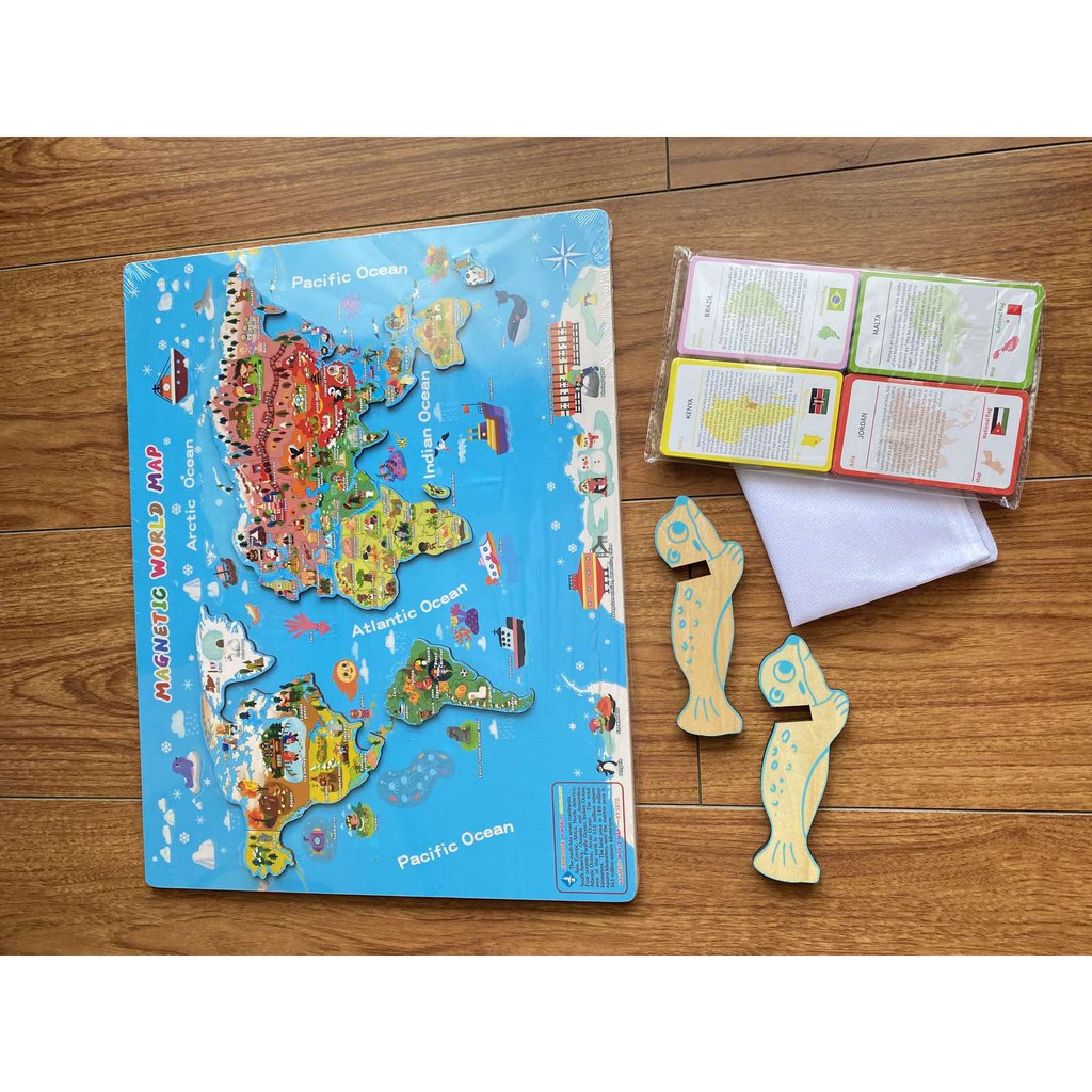 Wooden Magnetic World Map/Jigsaw Puzzles for Kids with Country Flash Cards and National Flags