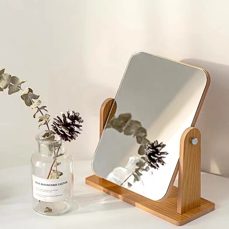 Wooden Makeup Mirror 360 Degree Portable Adjustable Table Desk Mirror Bathroom Living Room
