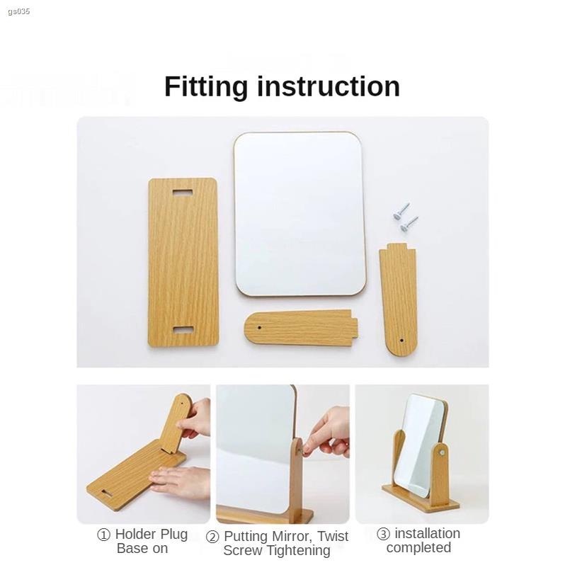 Wooden Mirror Stand Rectangular Rotatable Mirror Makeup Mirror Desk Mirror