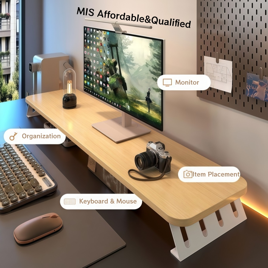 Wooden Monitor Stand with Storage and Laptop Stand, Extended Width 50/60/80cm Monitor Riser for Desk