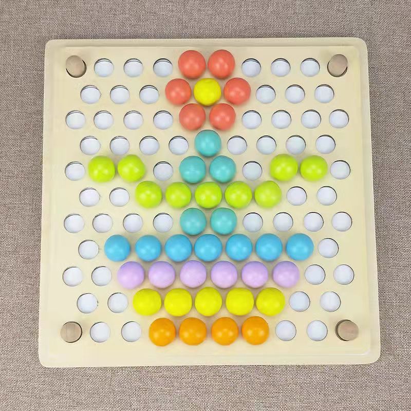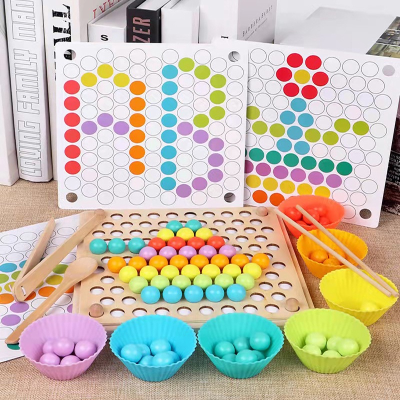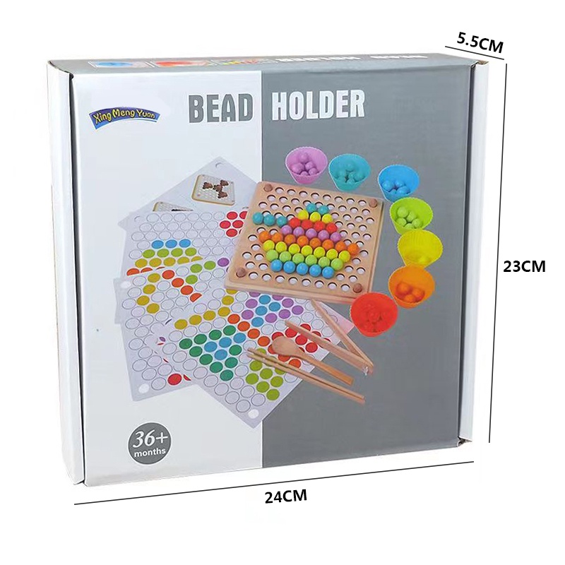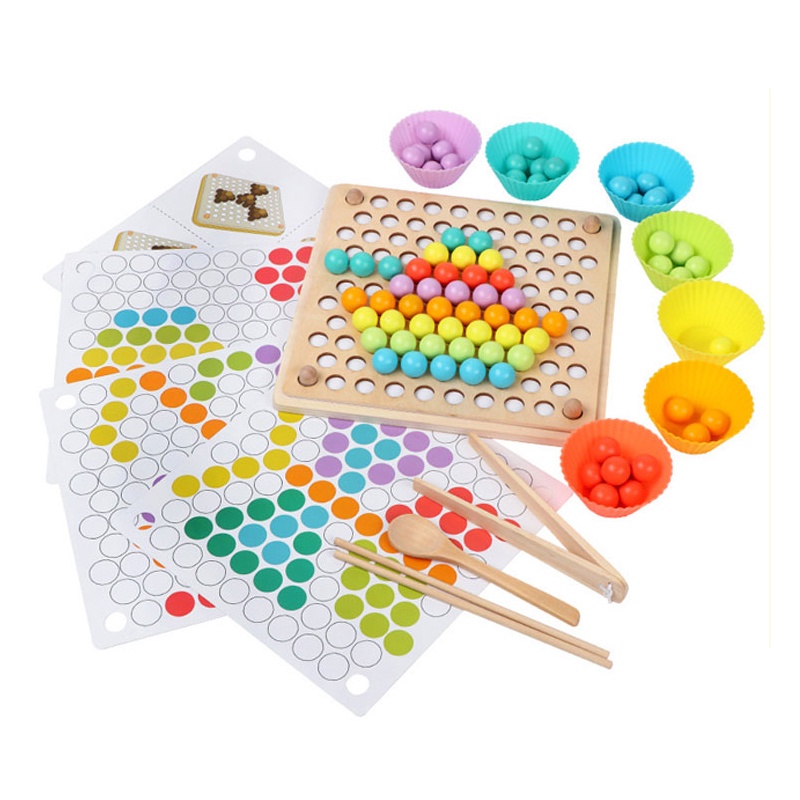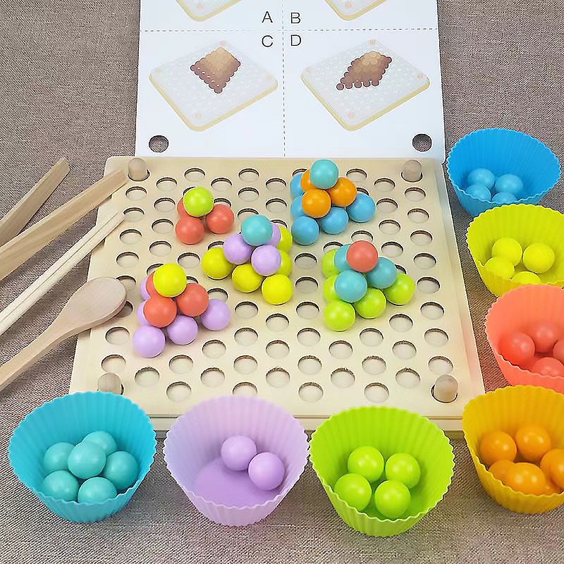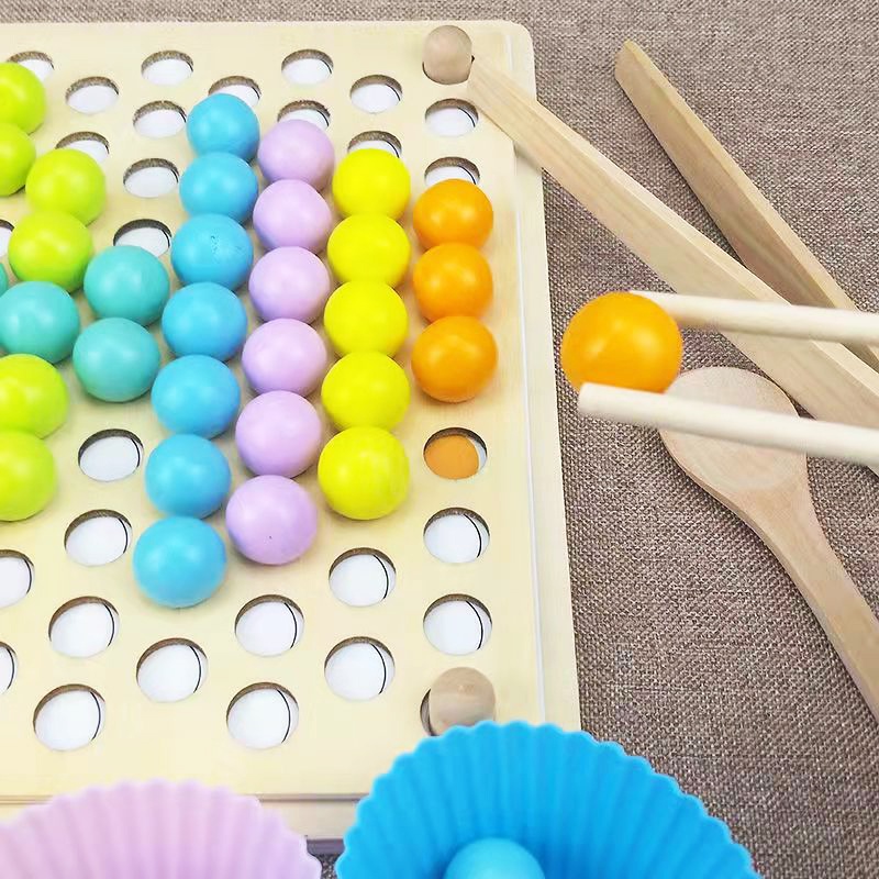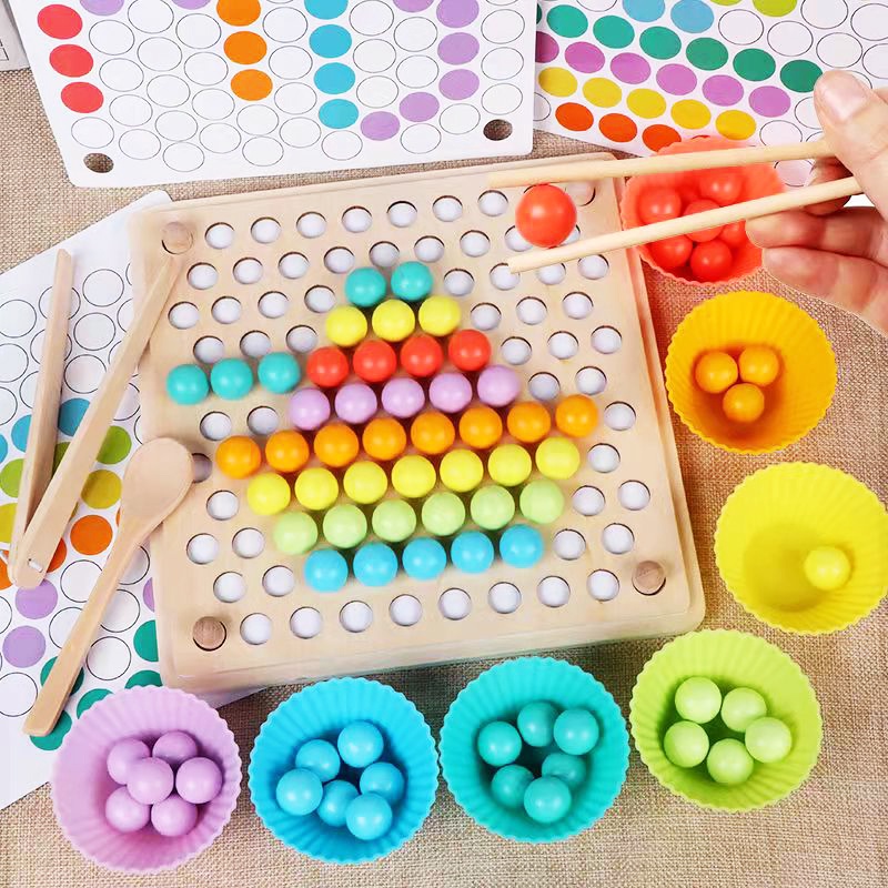 Wooden Montessori Kids Toy Sorting Bead Holder Chopstick And Spoon Training Toy Colour Matching Hand