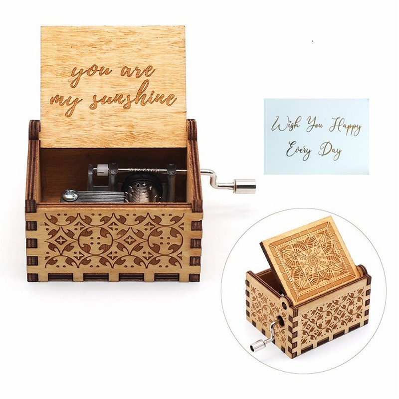 Wooden Music Box You Are My Sunshine /Can't Help Falling In Love Birthday Gift Hand-made Music Box