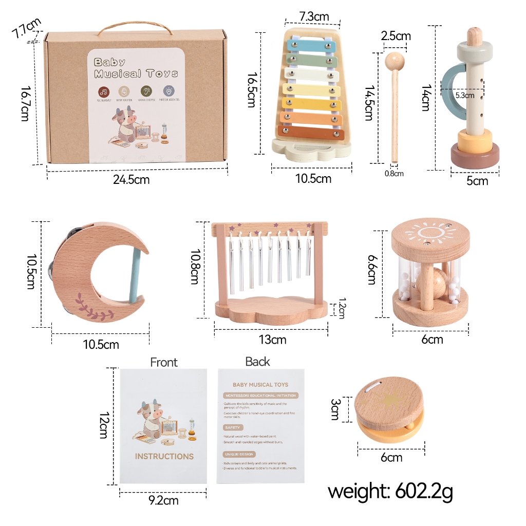 Wooden Musical Instruments Set Montessori Percussion Educational Musical Toys for Toddler 3+ Years Preschool Xylophone Music