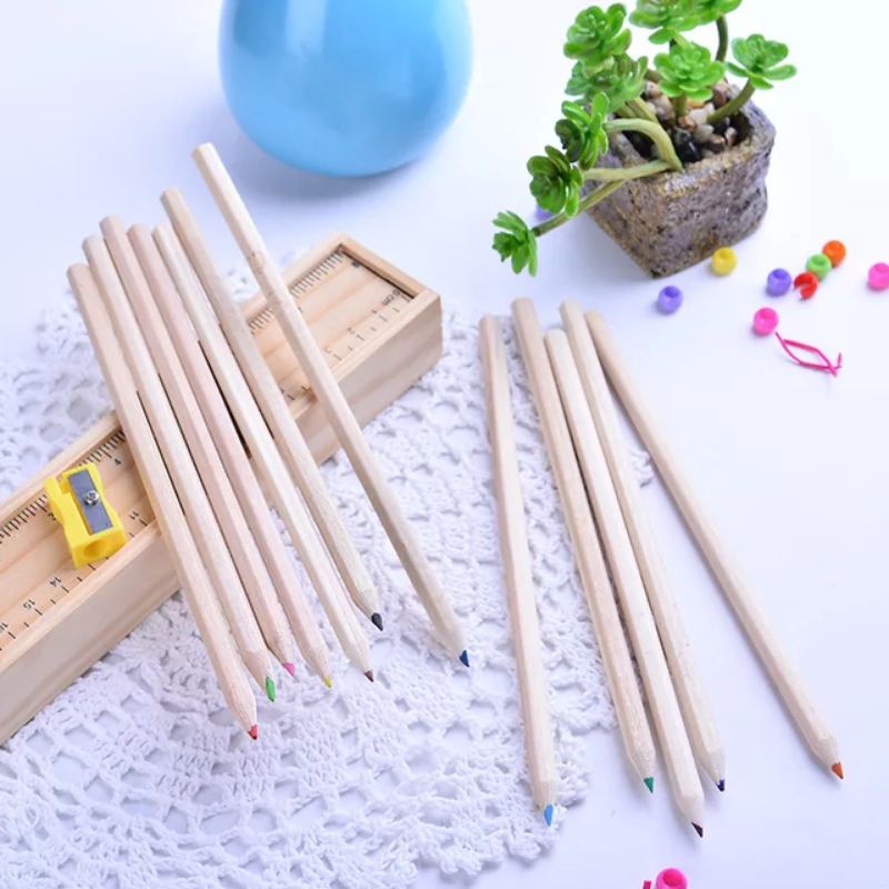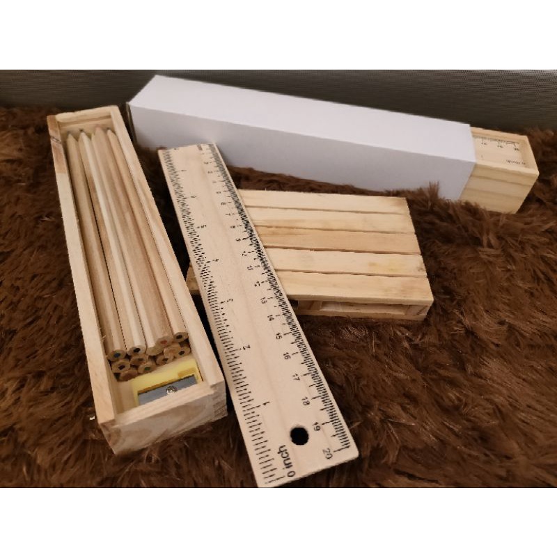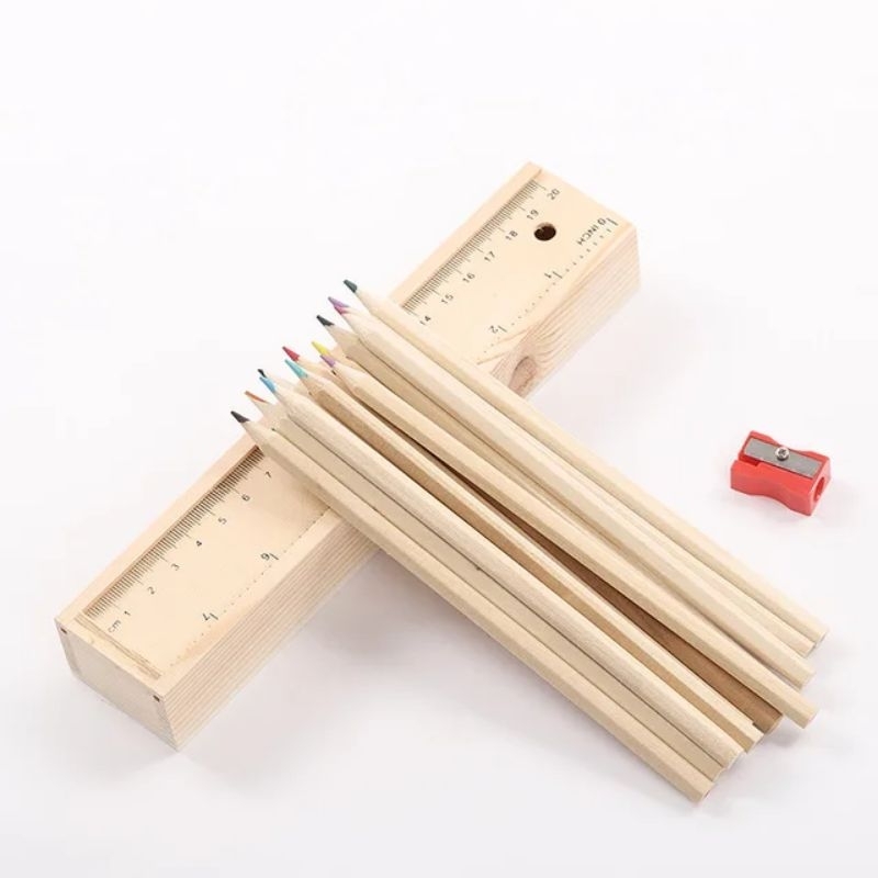 Wooden Pencil Case with ruler,12 colored pencil and sharpener
