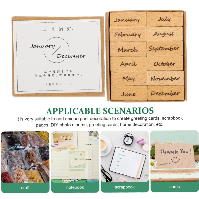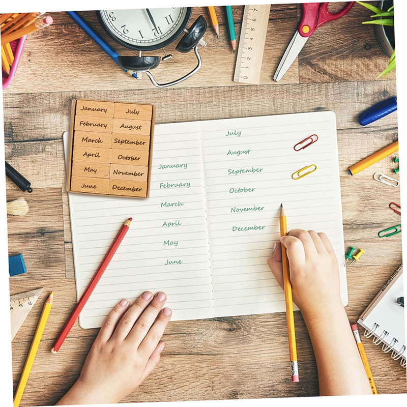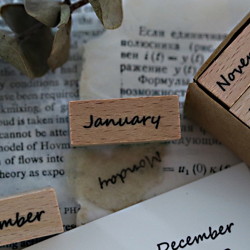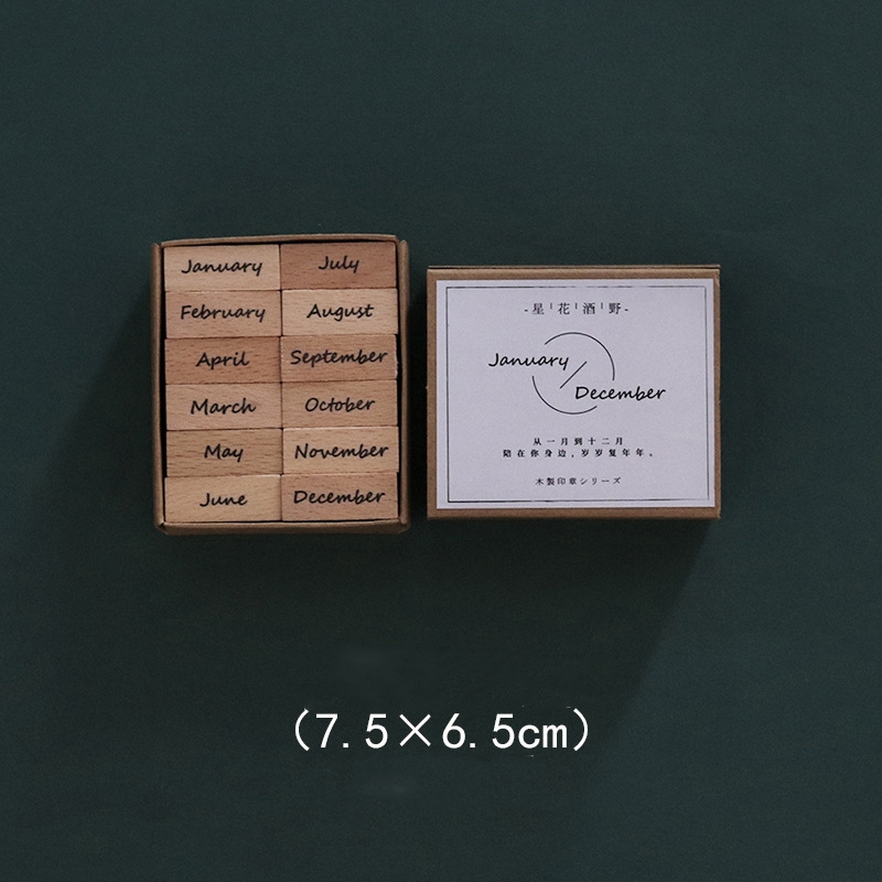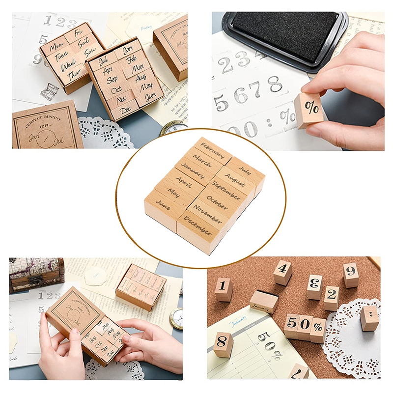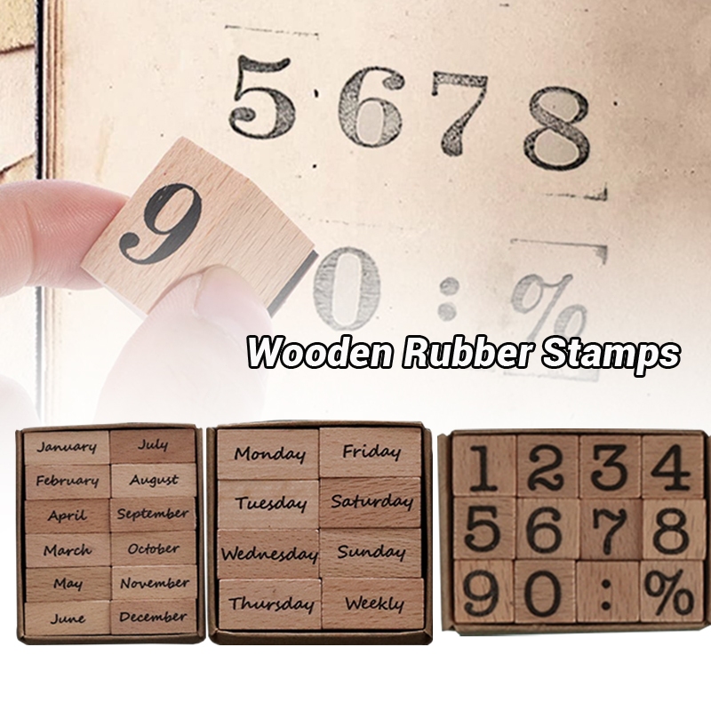 Wooden Rubber Month Numeric Week Combination Stamps For Crafting Scrapbooking Journaling Supplies