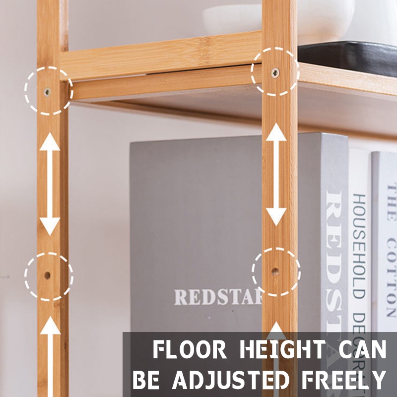 Wooden Shelf Rack Organizer Layer Book Shelf Bedroom Kitchen Shelf Storage Rack Height Adjustable