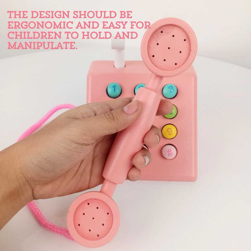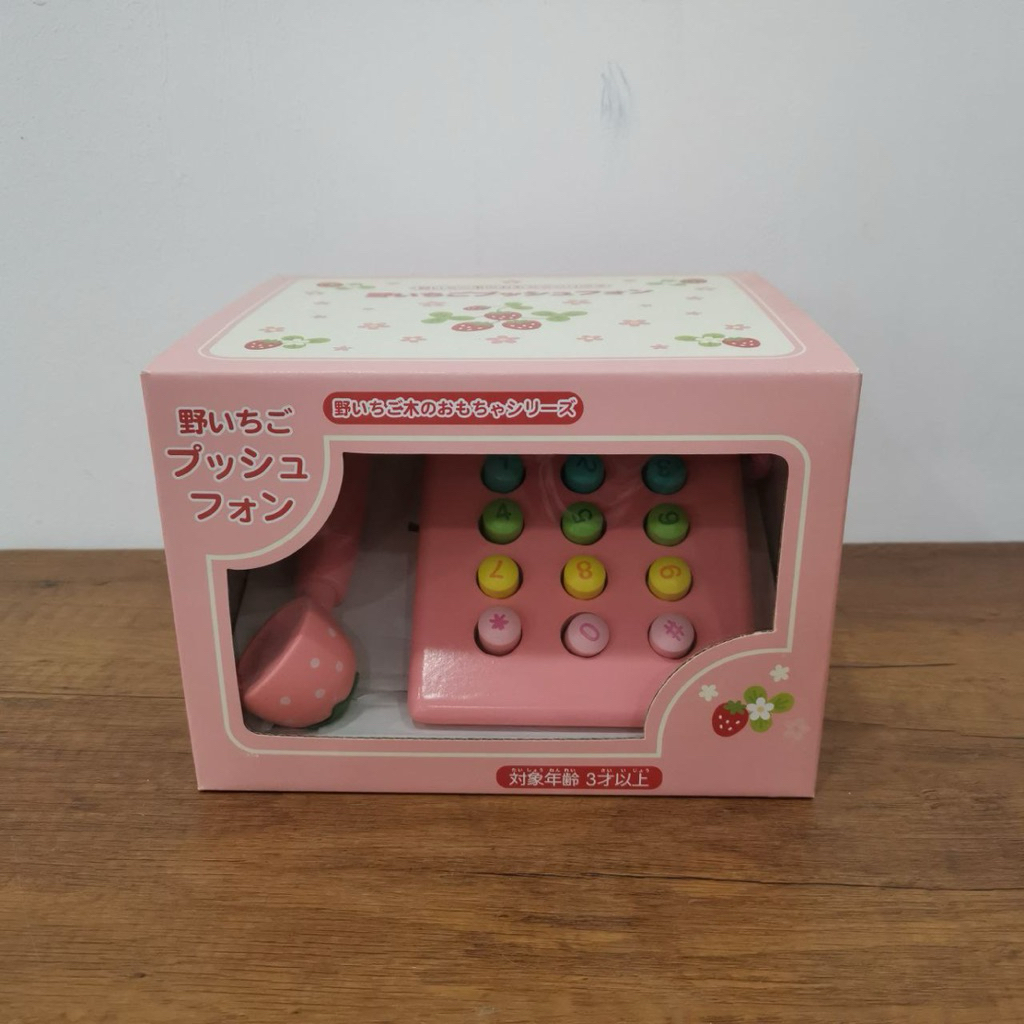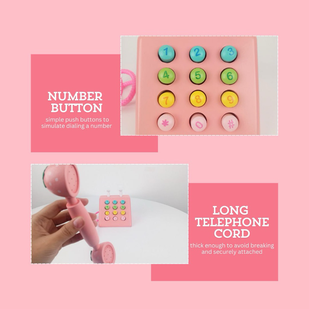 Wooden Strawberry Phone Toys Pretend Playset Children Girls Pink Telephone Call Dial Wooden toys