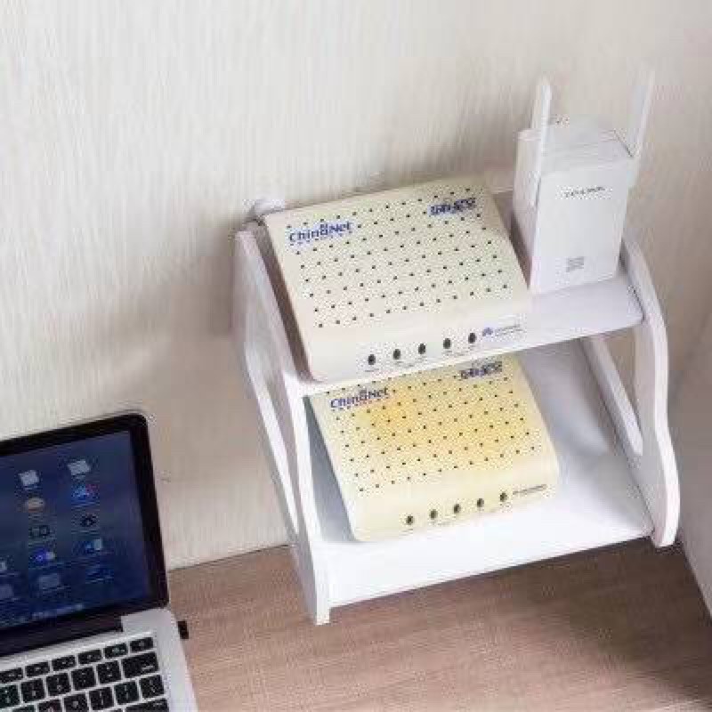 Wooden Wall Mounted Wifi Router Shelf Set-Top Box Bracket Storage Box Double Floating Shelf