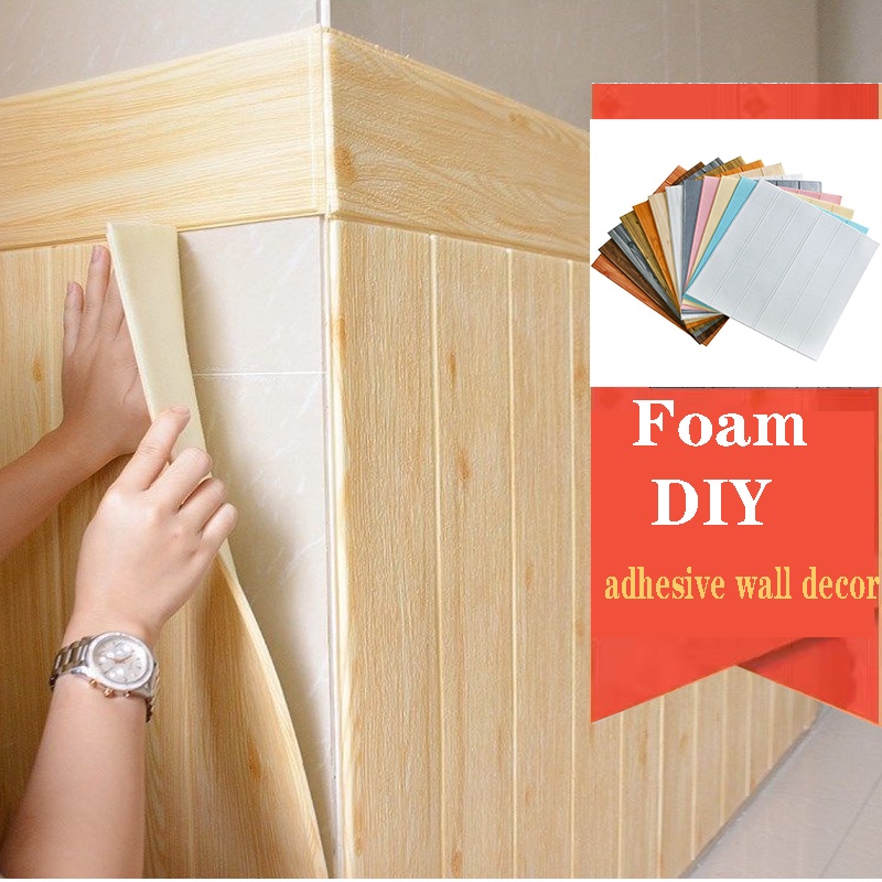 Wooden Wallpaper Wall Paper Dinding 3D Wall Sticker Adhesive Design Wooden Decoration Roof Ceiling Home Wall Panner Decor Easy Stick