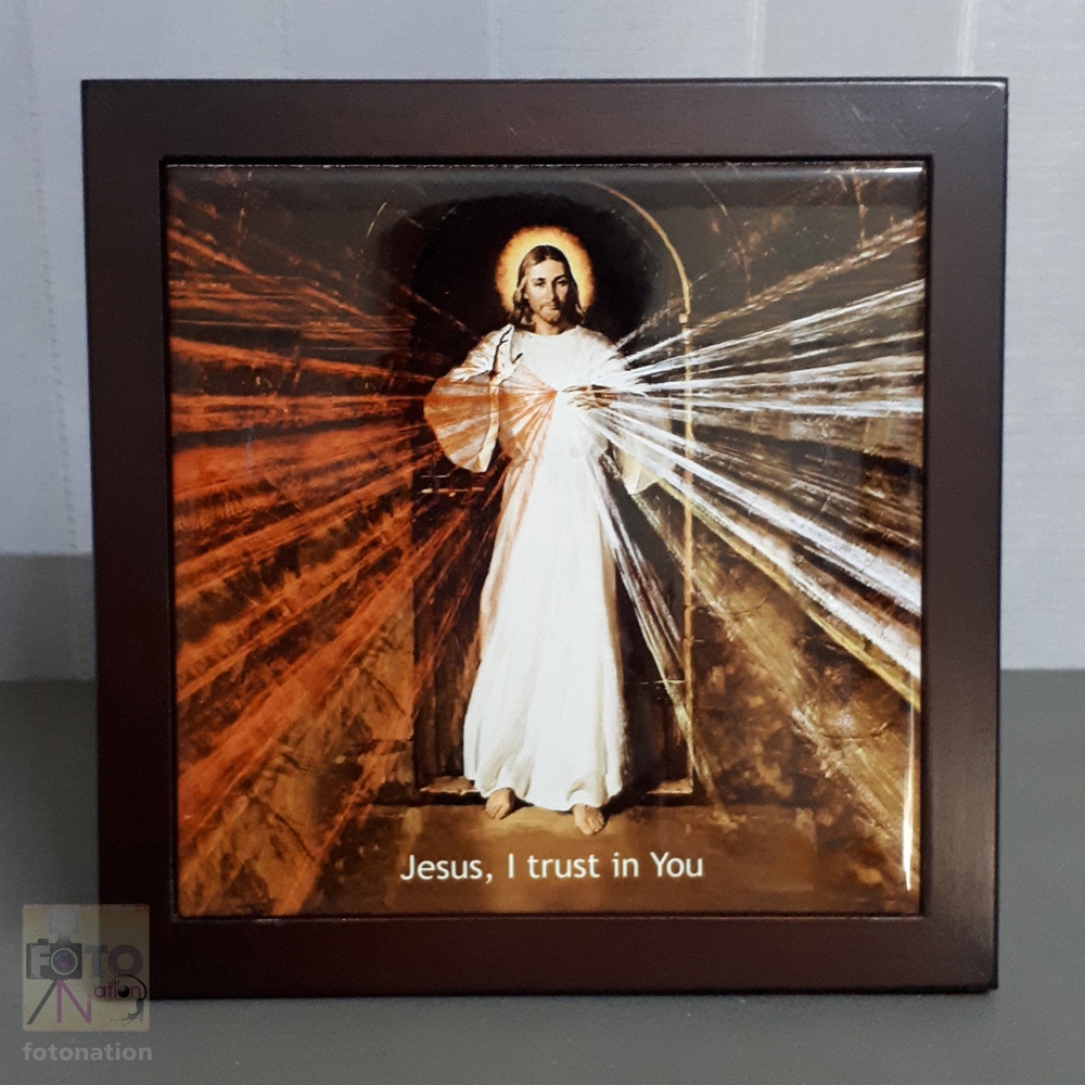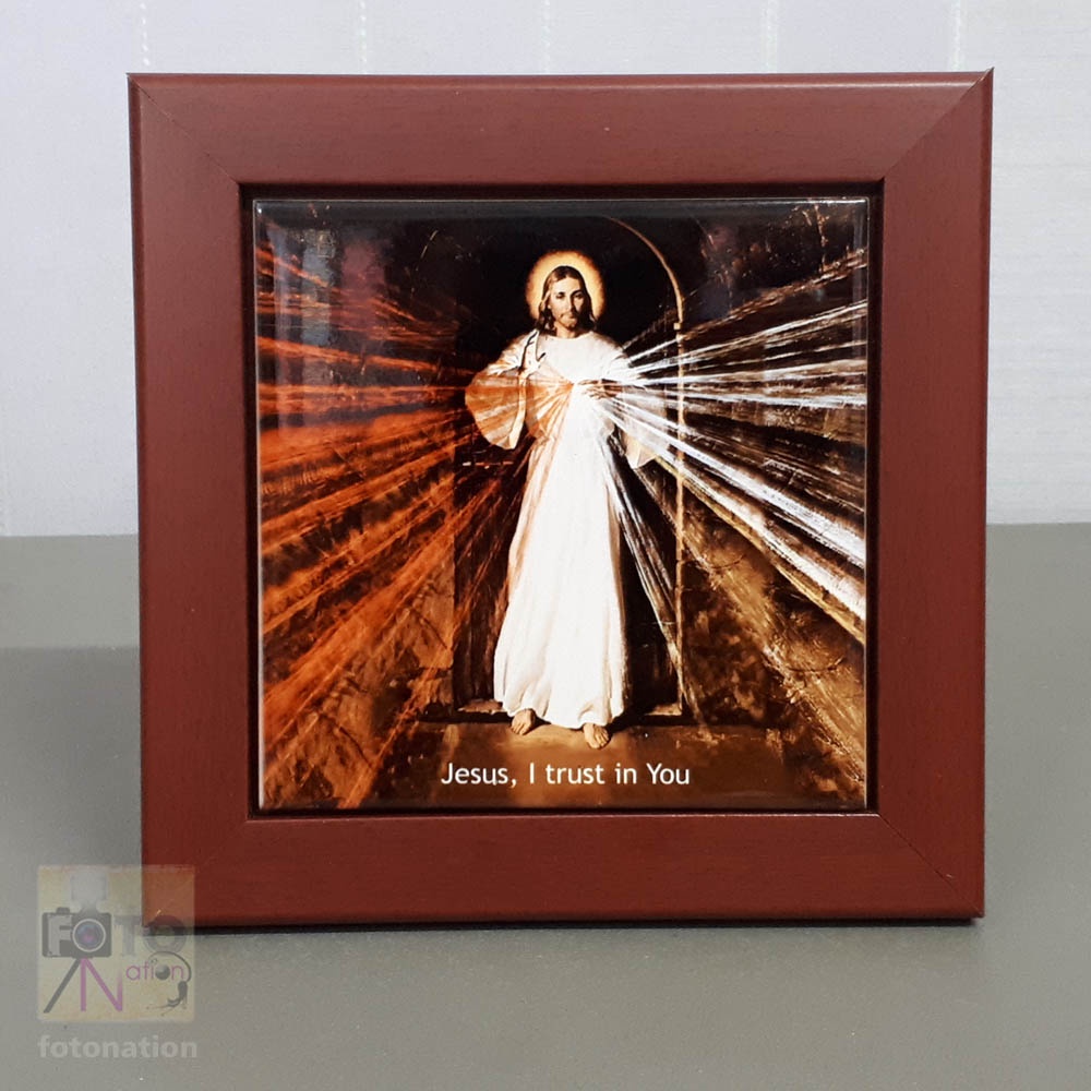 Wooden frame / printed ceramic tile, Jesus Divine Mercy, 3 o'clock prayer, for wall and altar