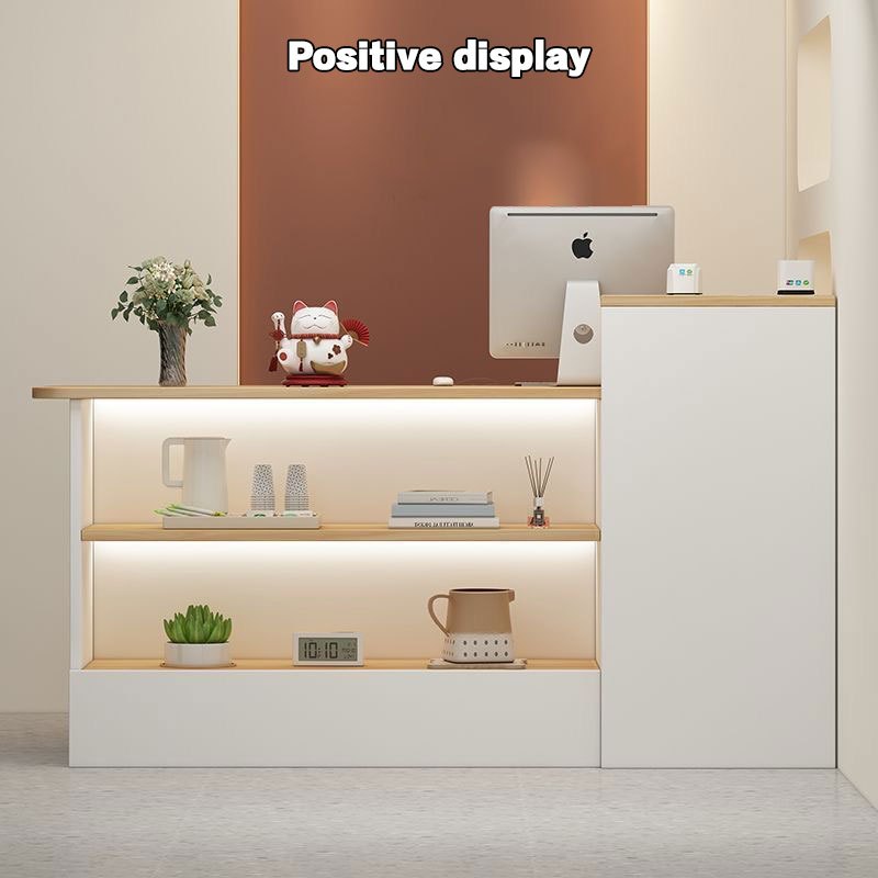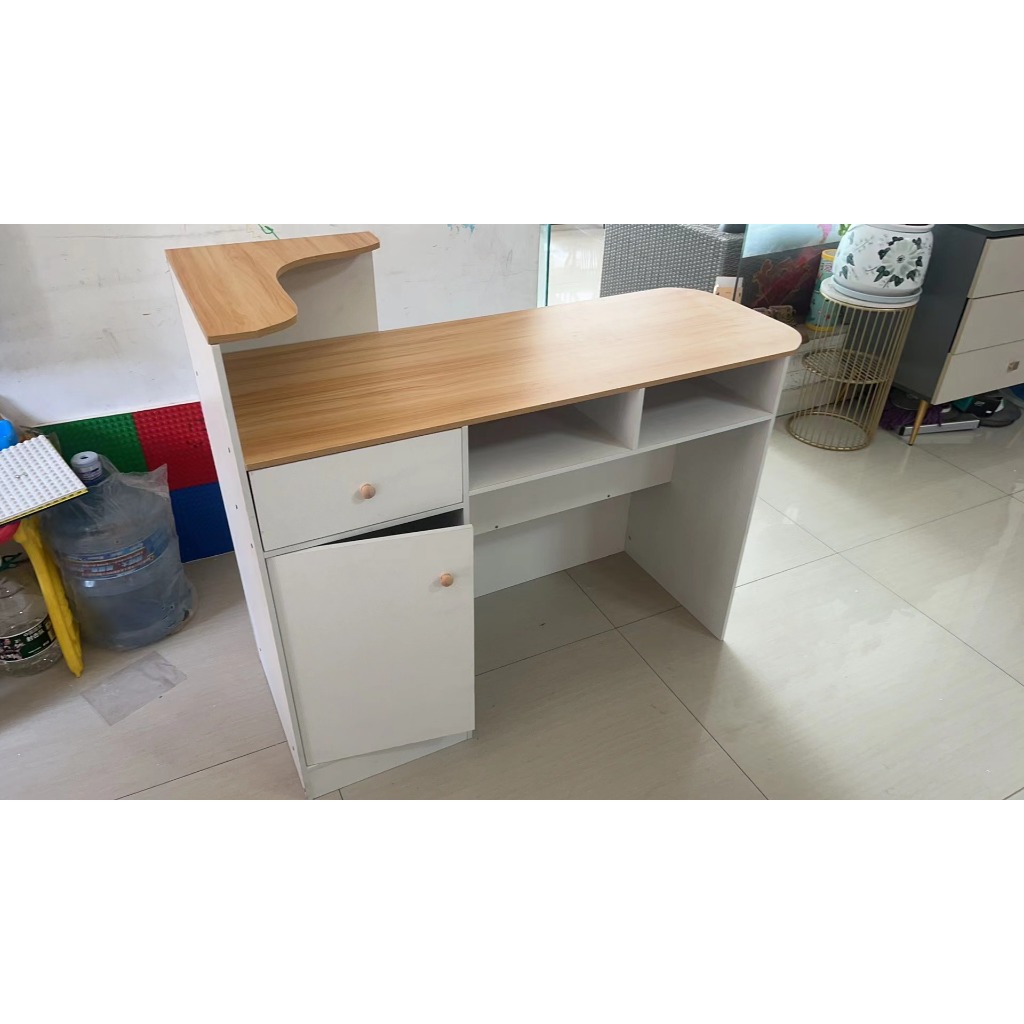 Wooden modern cash register, convenience store front desk, reception desk, supermarket/bar counter