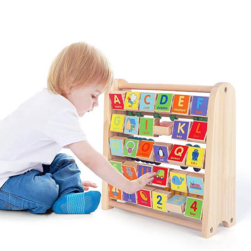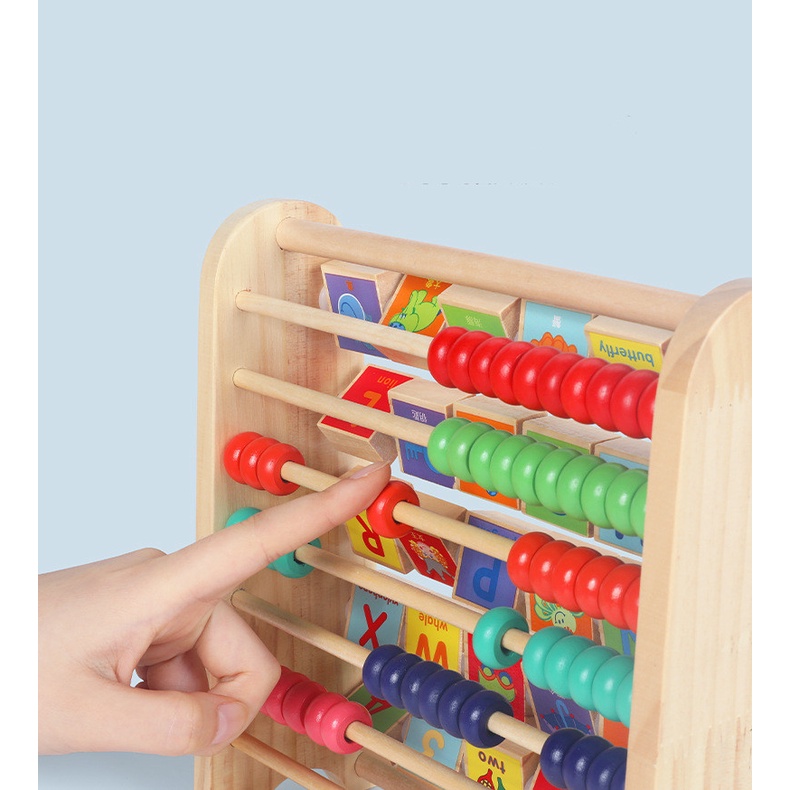 Wooden multifunctional children's picture learning math English 2 in 1 flip box educational toy