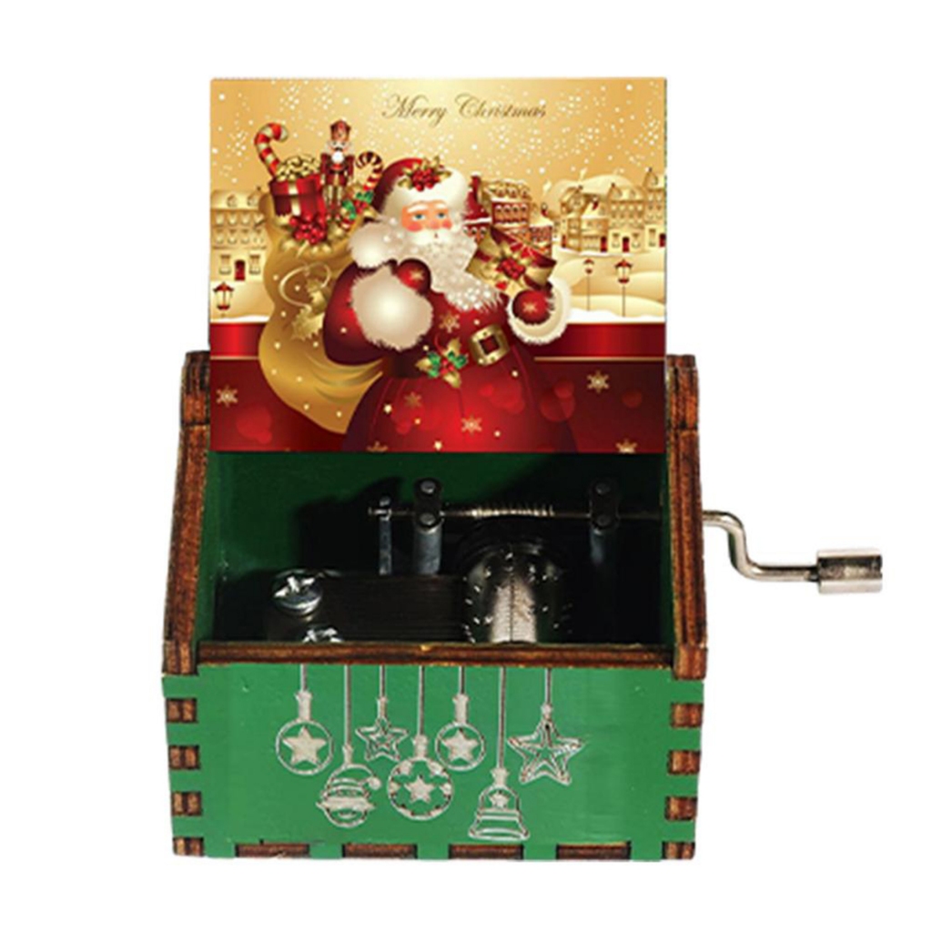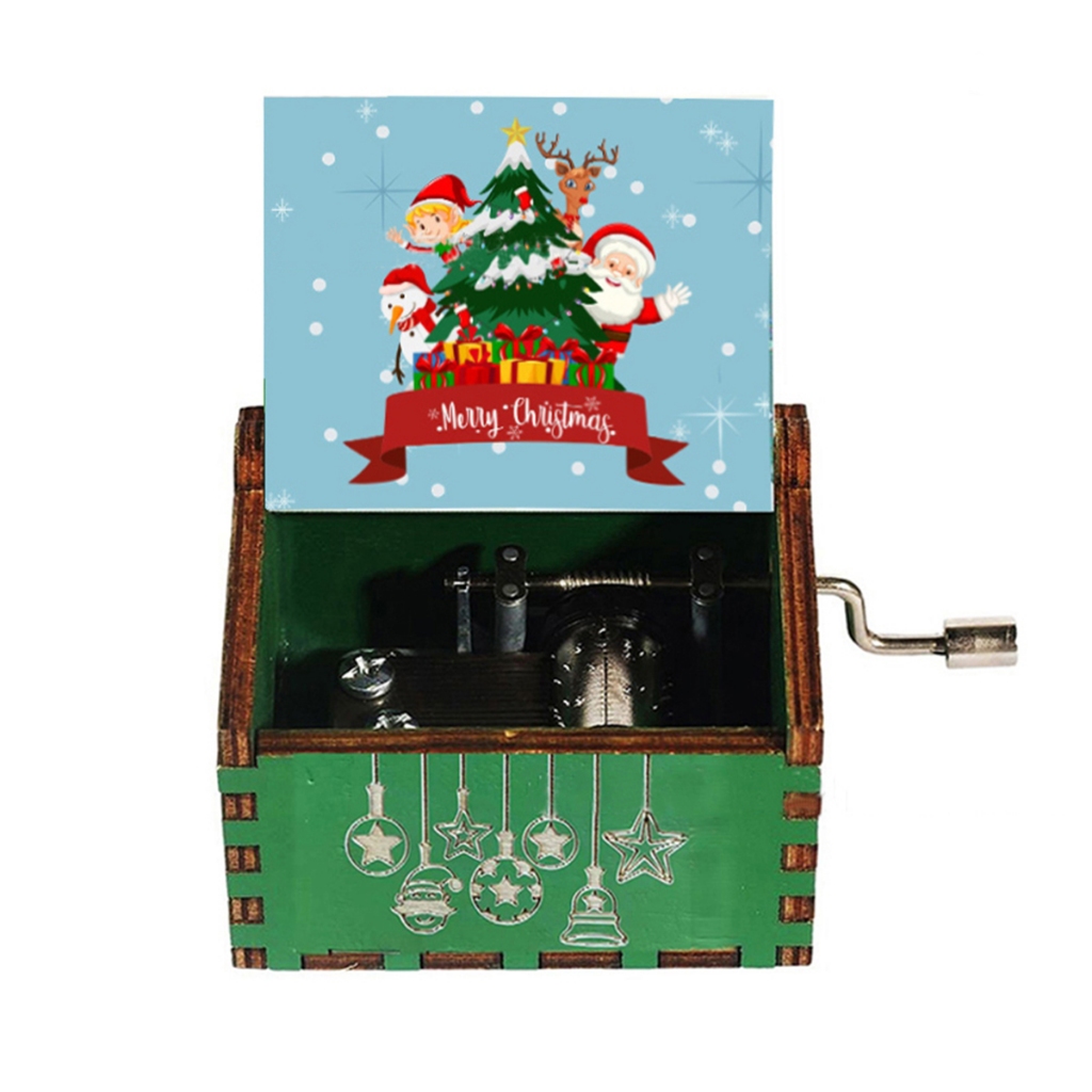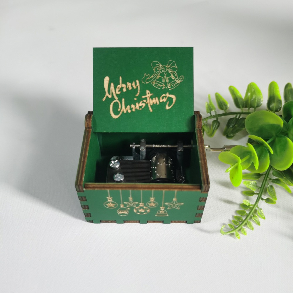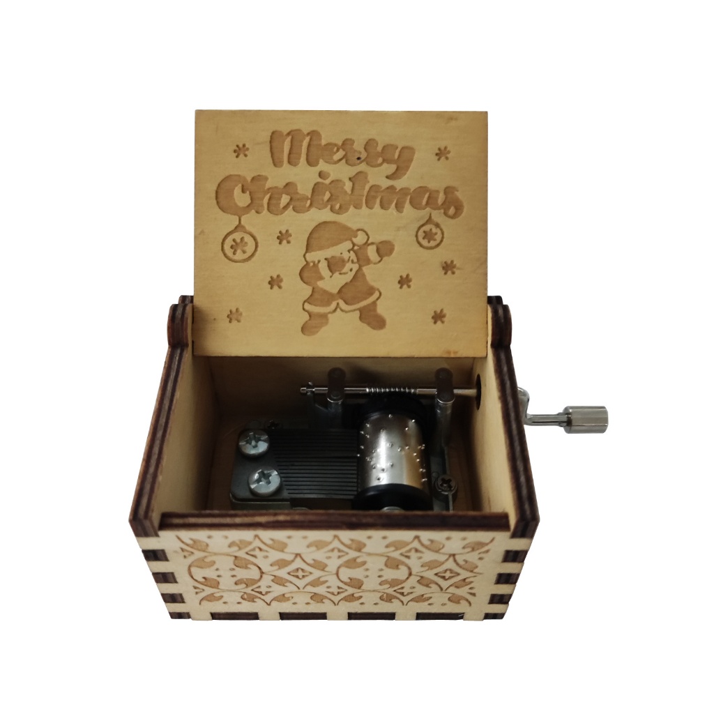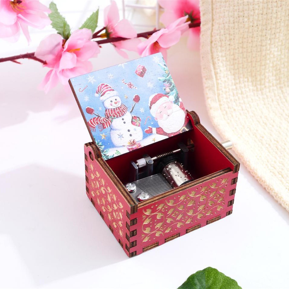 Wooden music box Christmas theme series music box Hand-crank rectangular music box