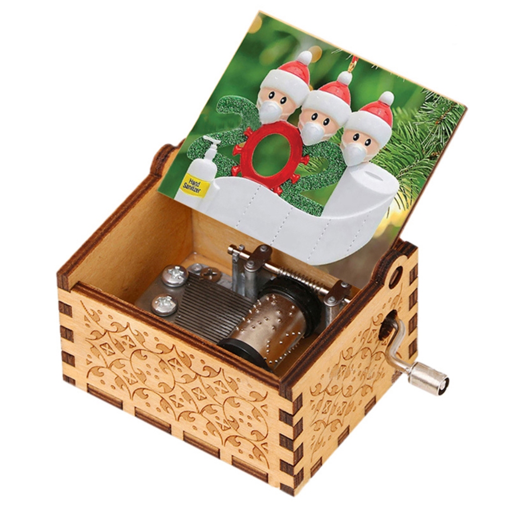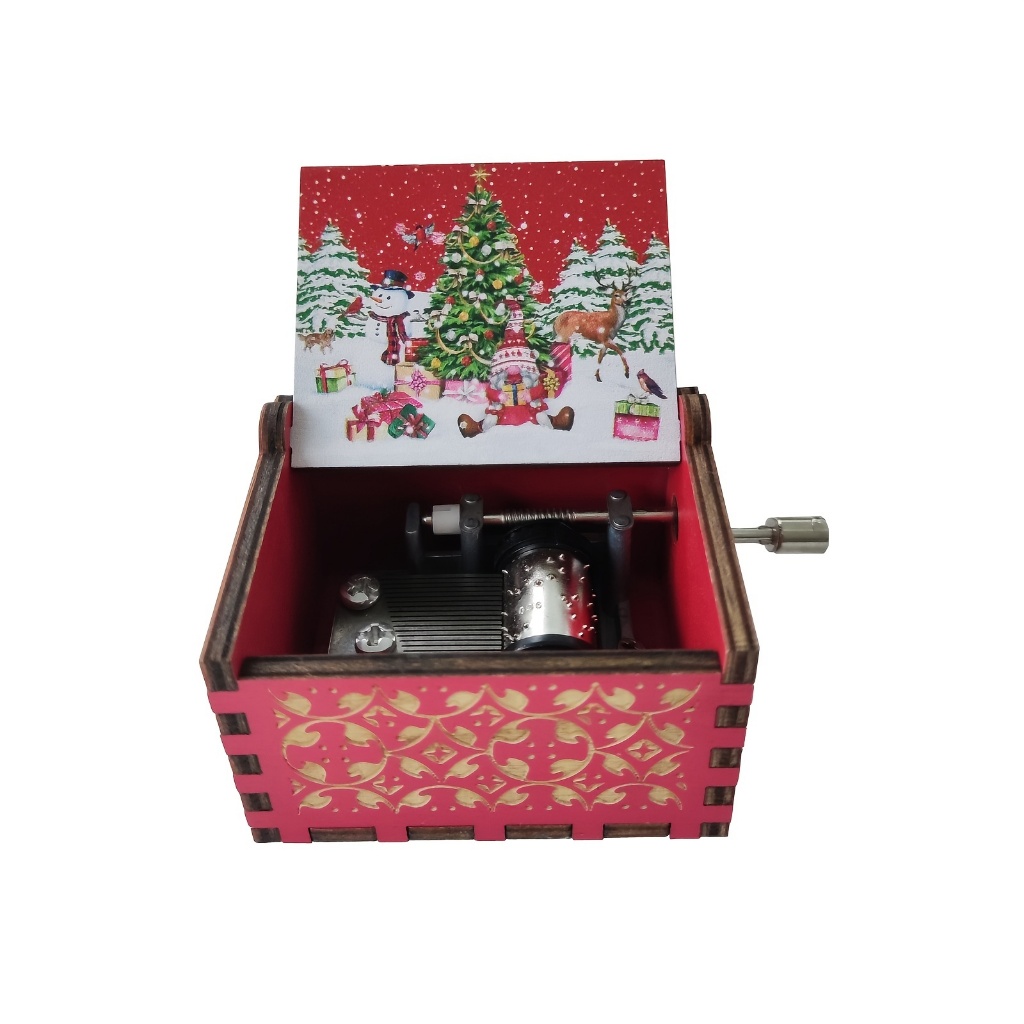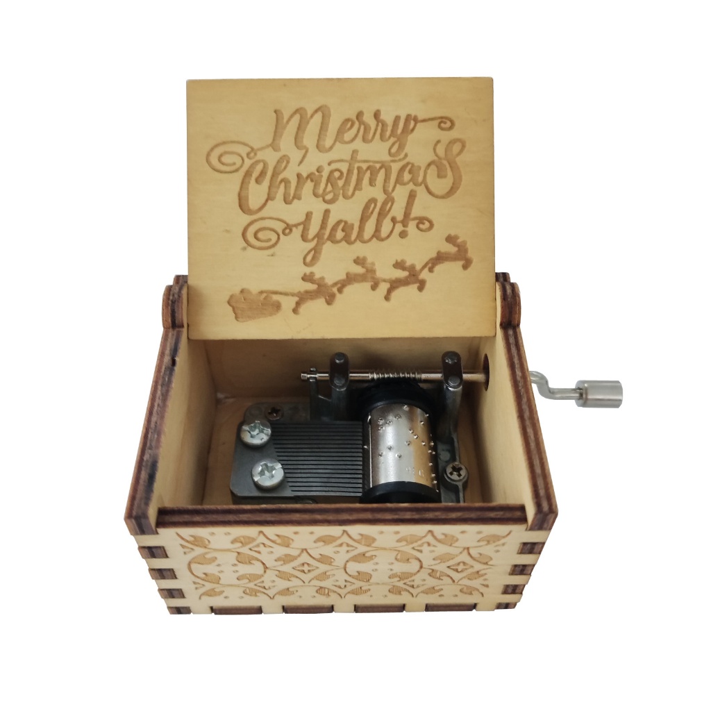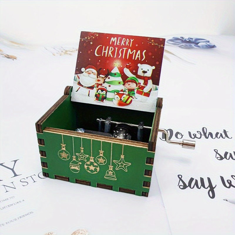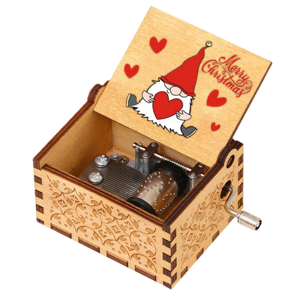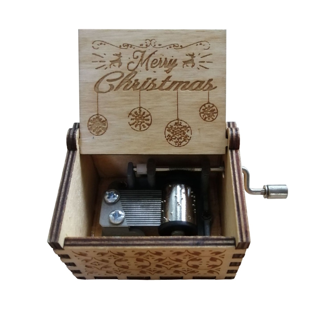 Wooden music box Christmas theme series music box Hand-crank rectangular music box