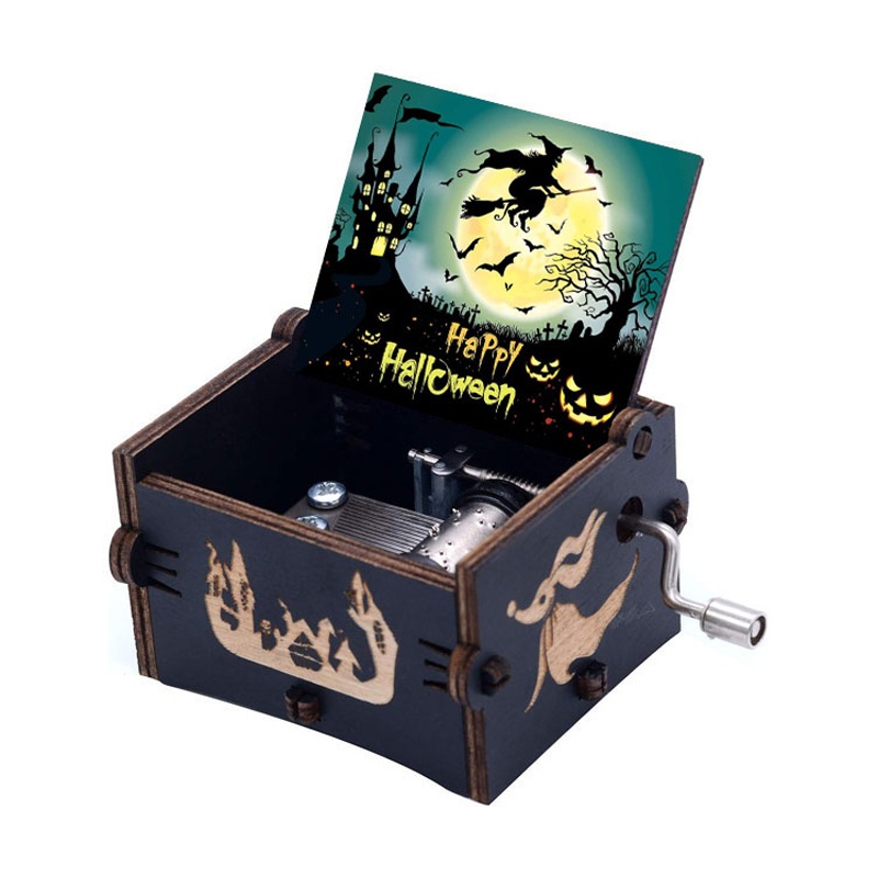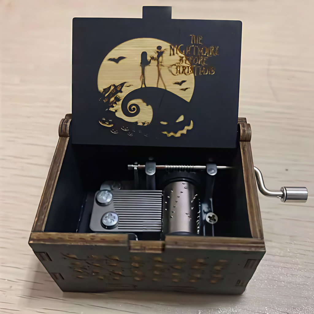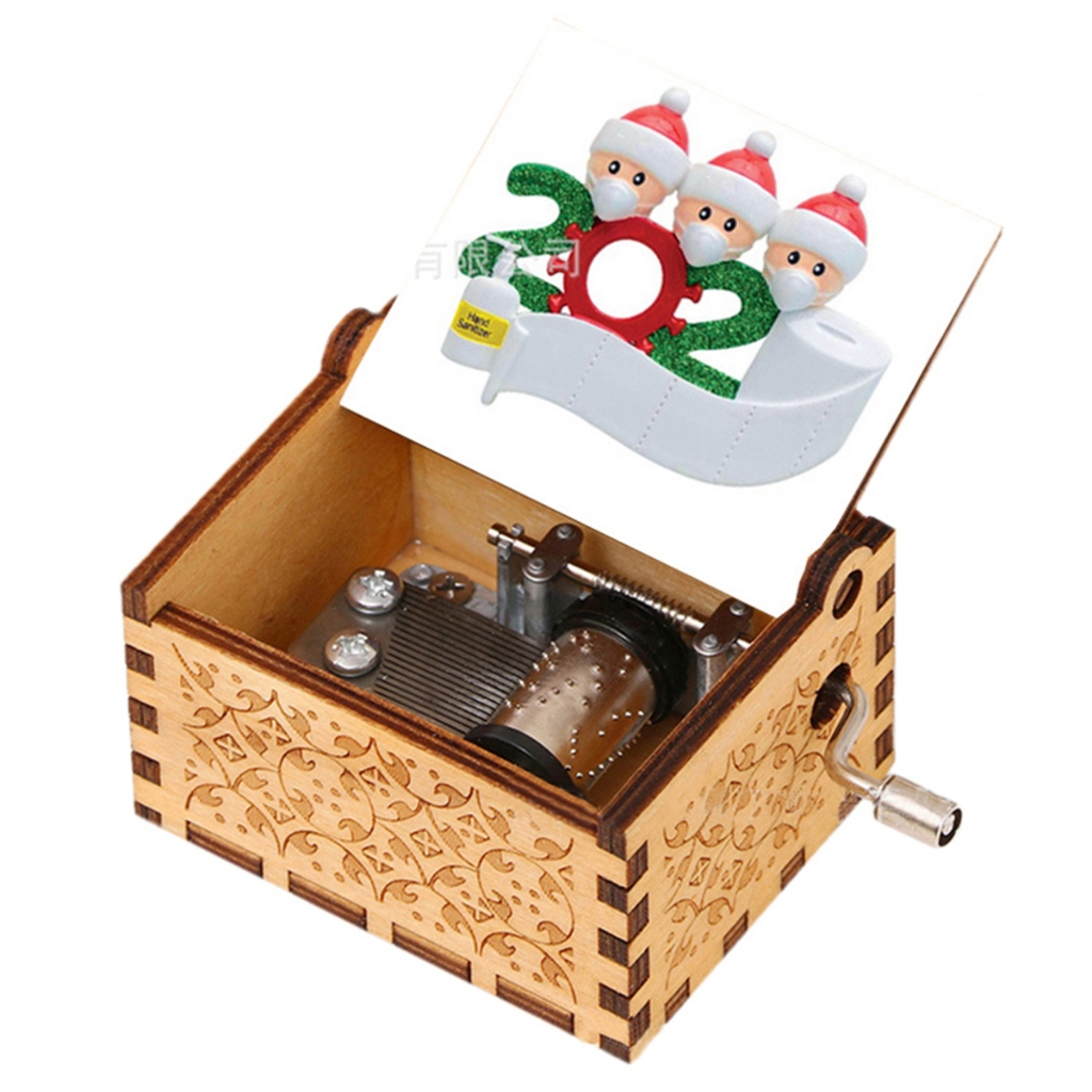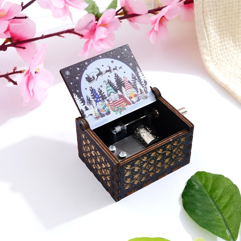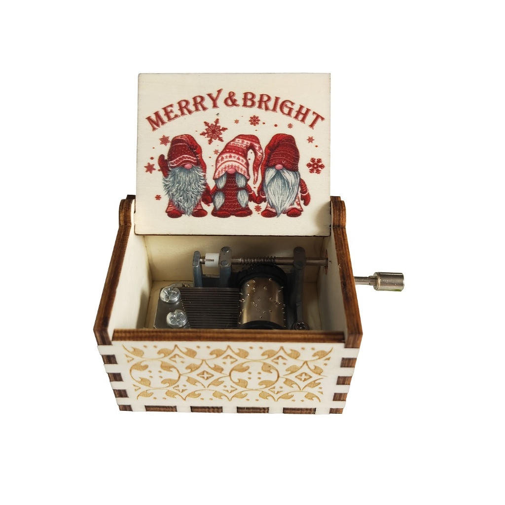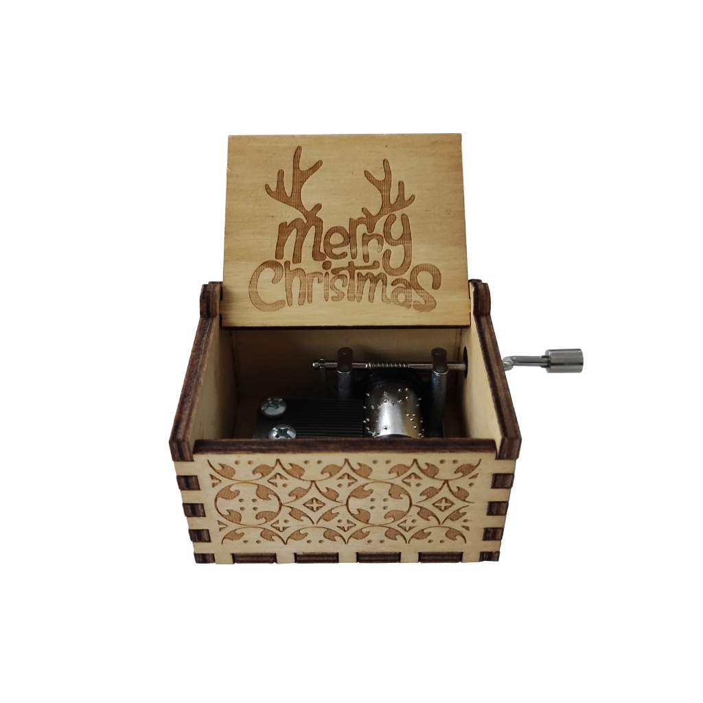 Wooden music box Christmas theme series music box Hand-crank rectangular music box