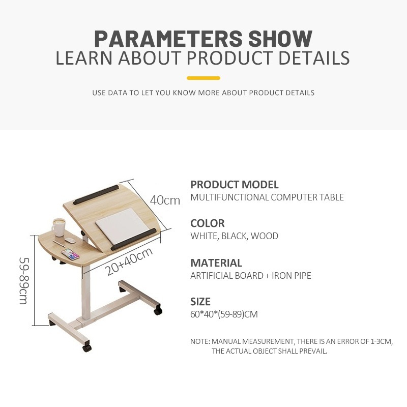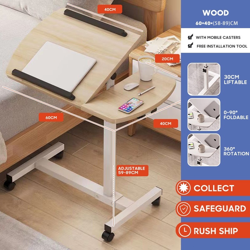 Wooden swivel and lift bedside table Removable Coffee table Bedroom table Reversible and rotatable