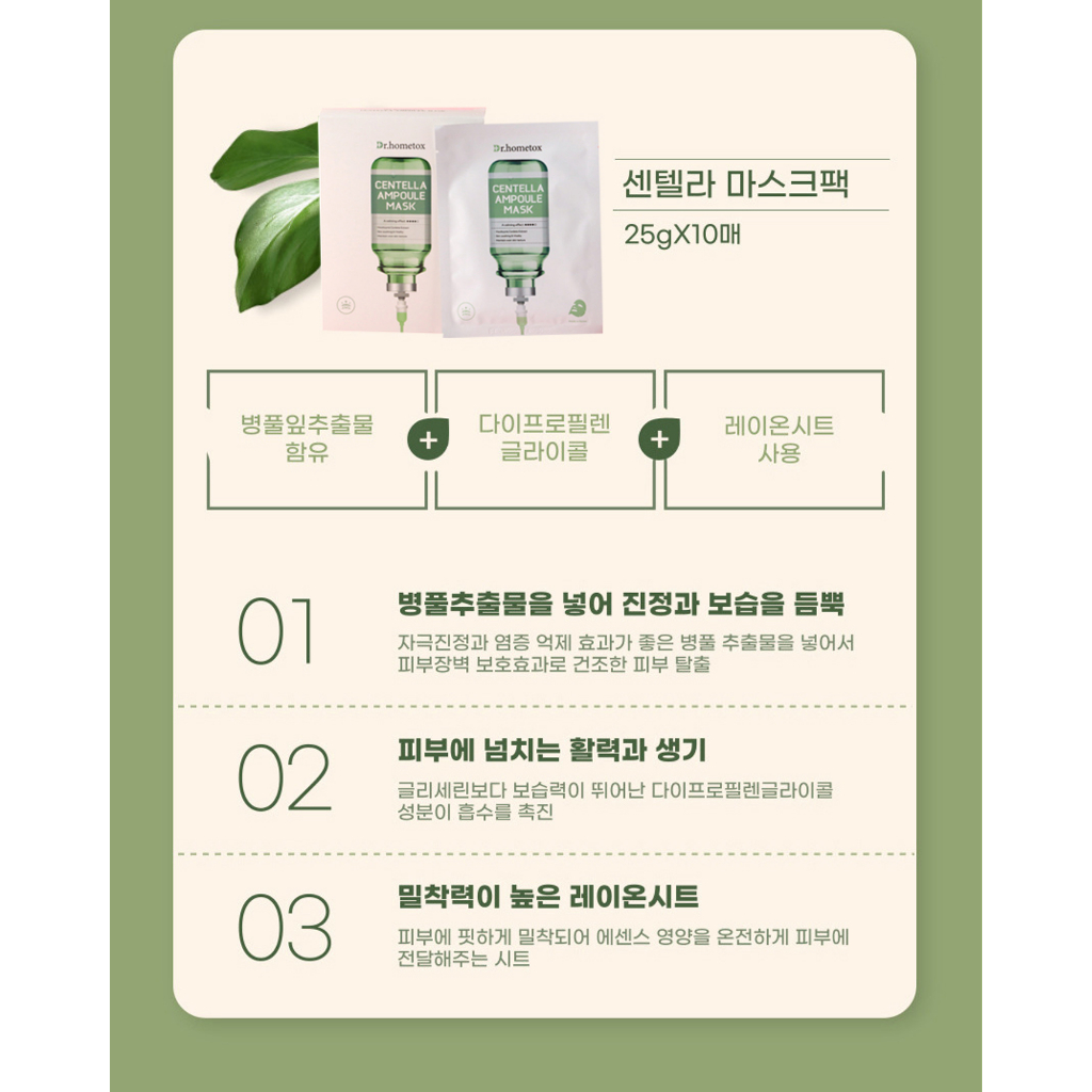 [Dr. Hometox] Centella Ampoule Mask (10 Sheets) | Soothing & Skin Repair