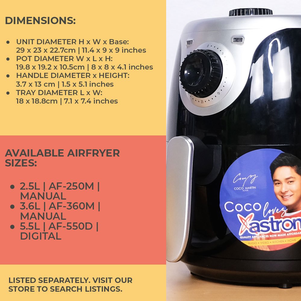 Astron AF250M Turbo Air Fryer - 2.5 Liter Capacity | Small Kitchen Friendly | Compact Size | 1000W