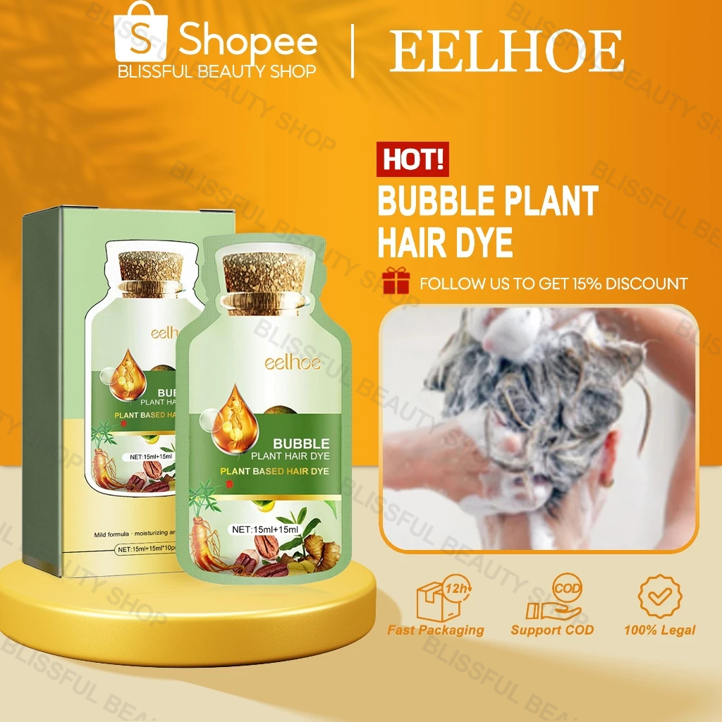 EELHOE Bubble Plant Hair Dye 10Bag 30ml Pure Plant Extract Cover Grey Hair Dye Hair Coloring Shampoo