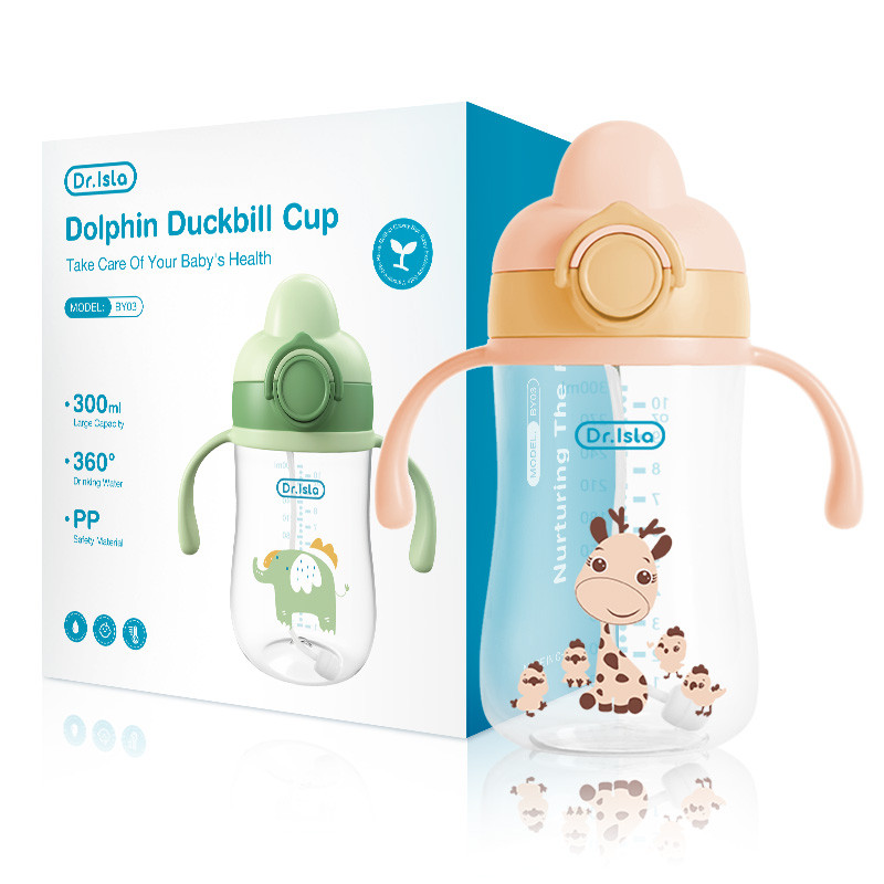 Dr.isla Drinking Cup With Straw And Handle Baby Bottle Leak-proof and Drop-proof 300ml BY03