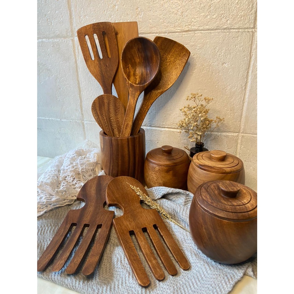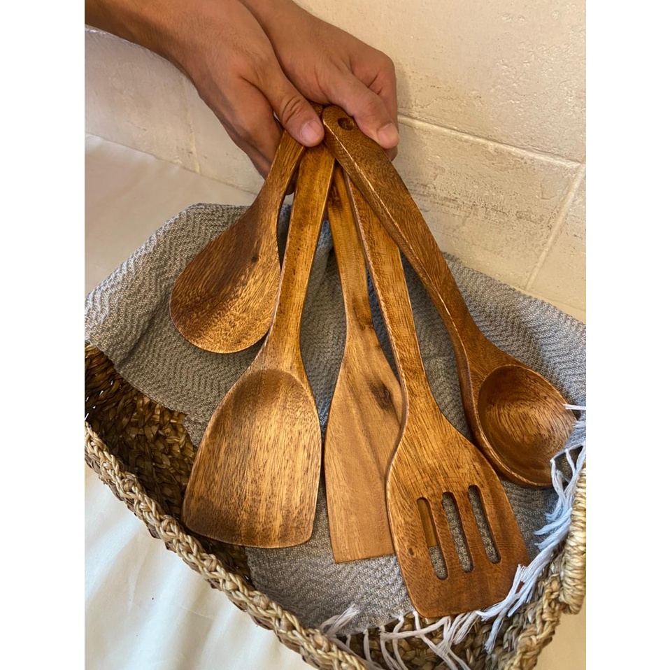Woods in love Acacia Wooden Cutlery Utensil Set of 5 Large Cooking Utensil for Non Stick Cookware